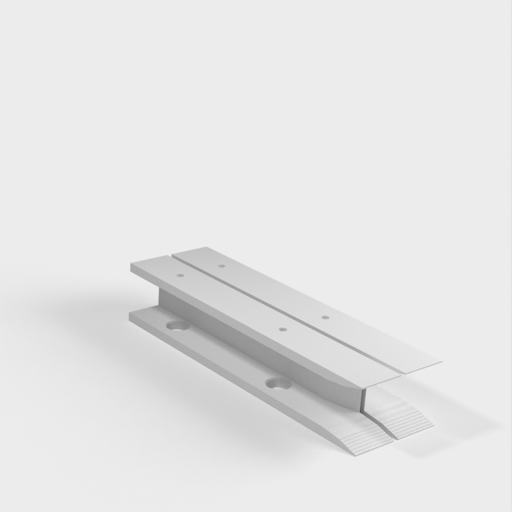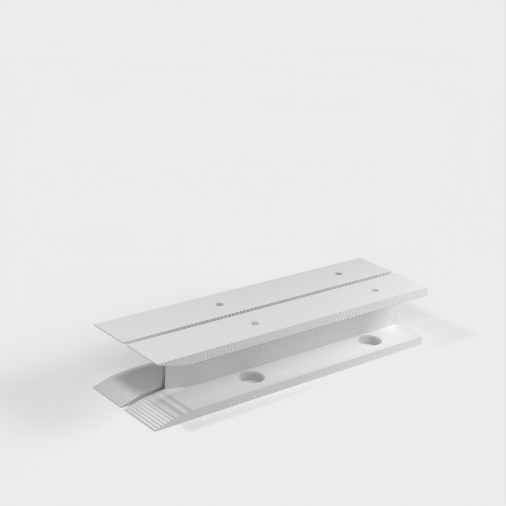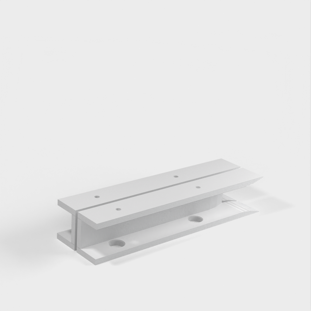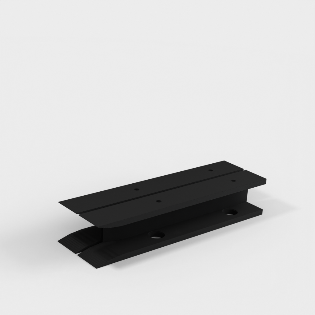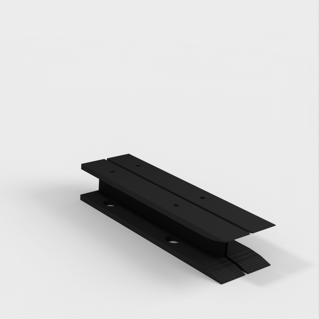 Die Aufhängung besteht aus zwei Schienen, die mit 2x M3-Schrauben unter Ihrem Schreibtisch montiert werden. Die Aufhängung selbst ist zur Erhöhung der Stabilität als zwei parallele Türme ausgeführt.