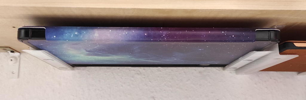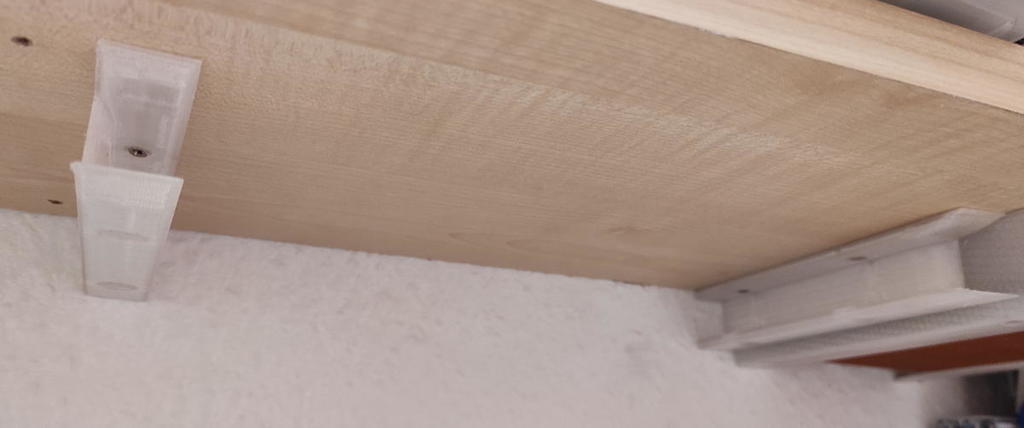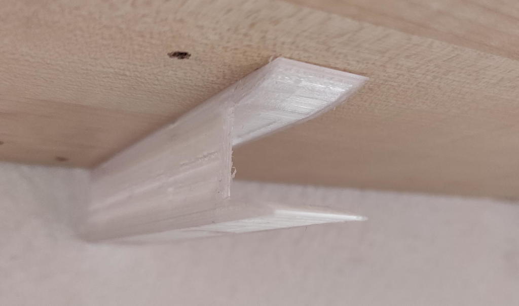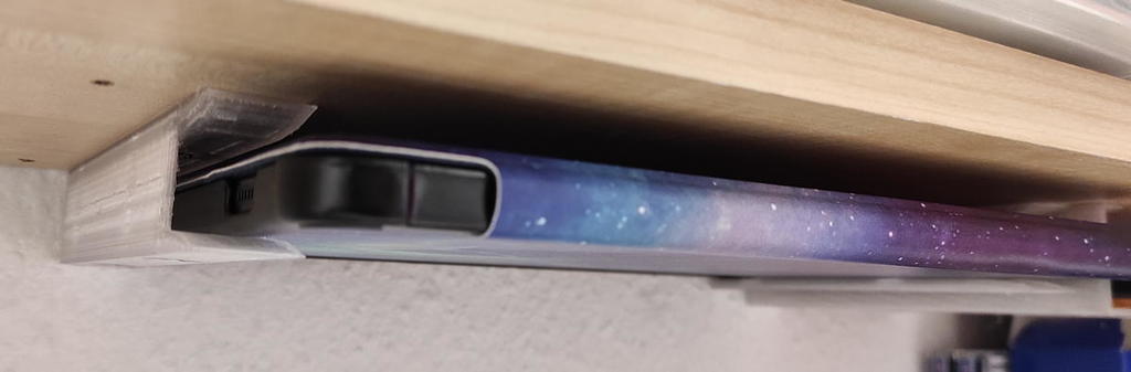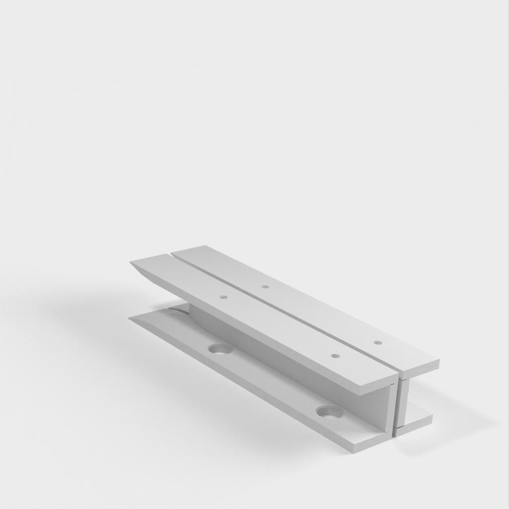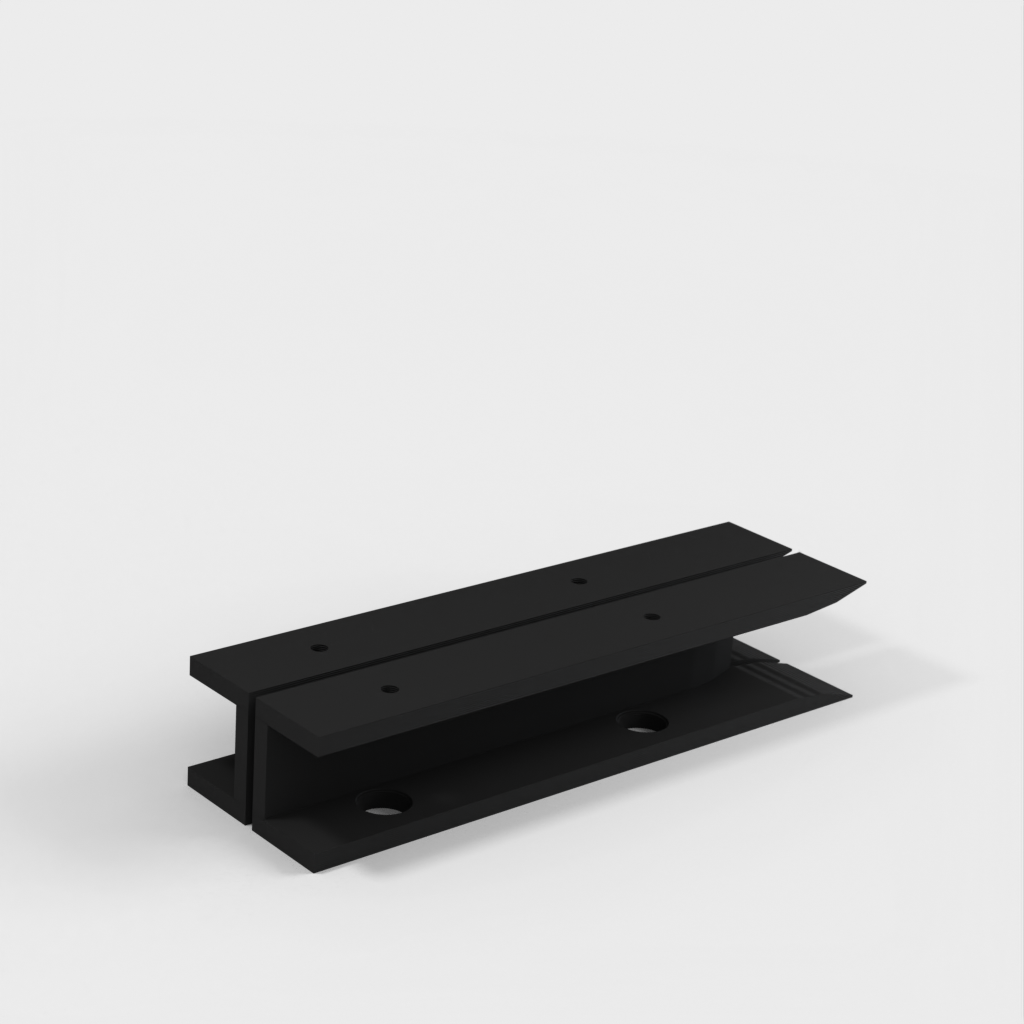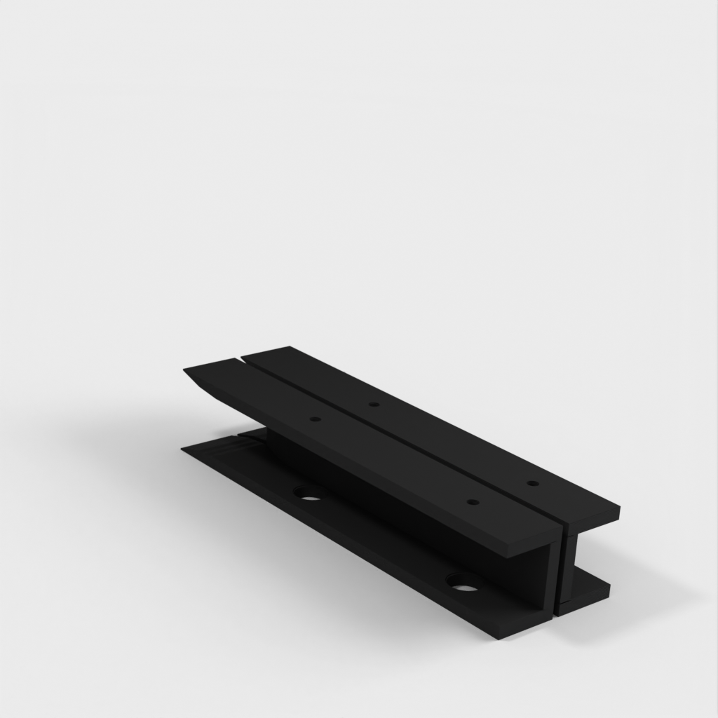 Die Aufhängung besteht aus zwei Schienen, die mit 2x M3-Schrauben unter Ihrem Schreibtisch montiert werden. Die Aufhängung selbst ist zur Erhöhung der Stabilität als zwei parallele Türme ausgeführt.
