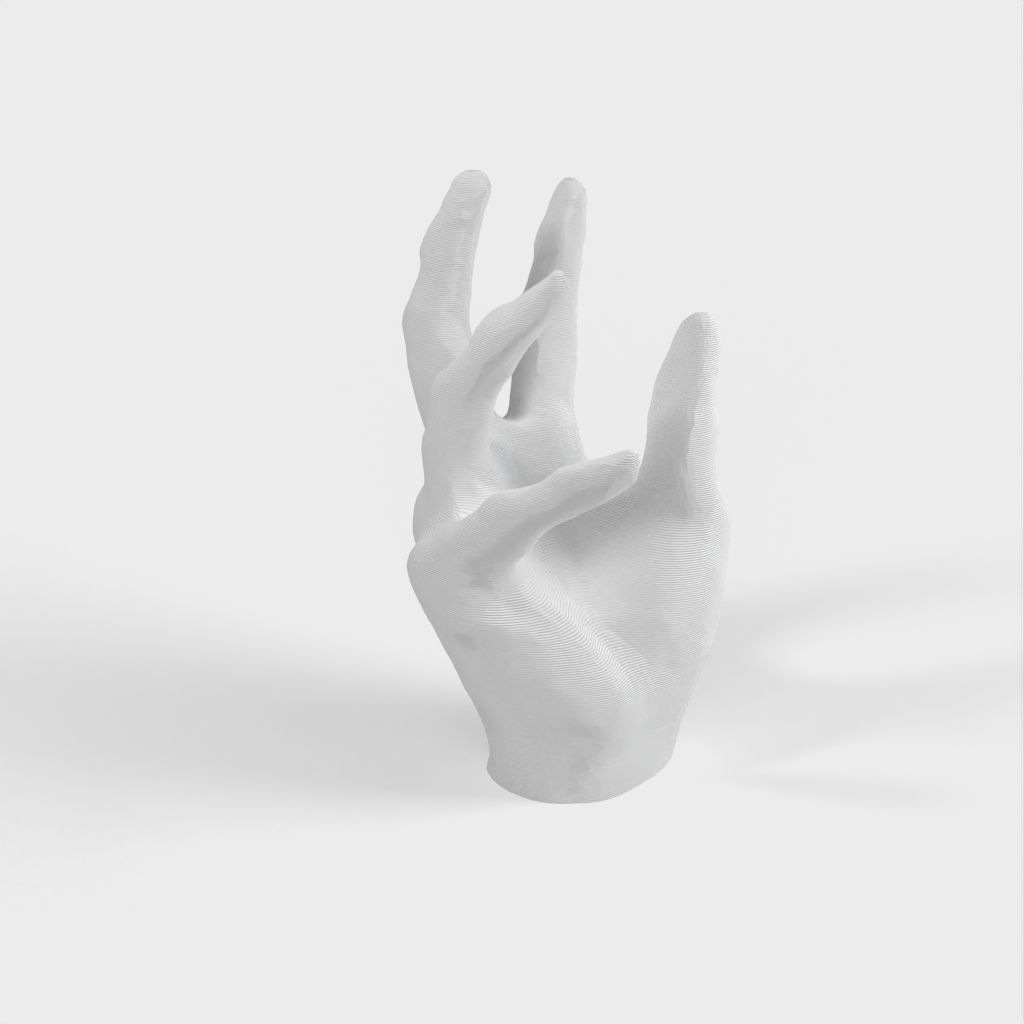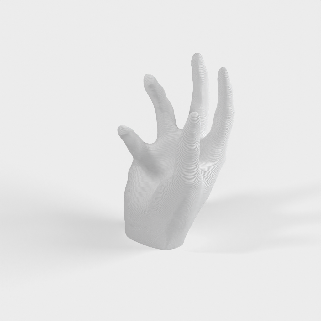 Die iPhone-Hand ist eine perfekte Lösung für die Aufbewahrung Ihres Smartphones auf dem Schreibtisch. Diese 3D-gescannte Nachbildung einer Hand dient zum Halten Ihres iPhones oder eines anderen Smartphones. Es ist für optimalen Druck ohne Stützmaterial konzipiert.