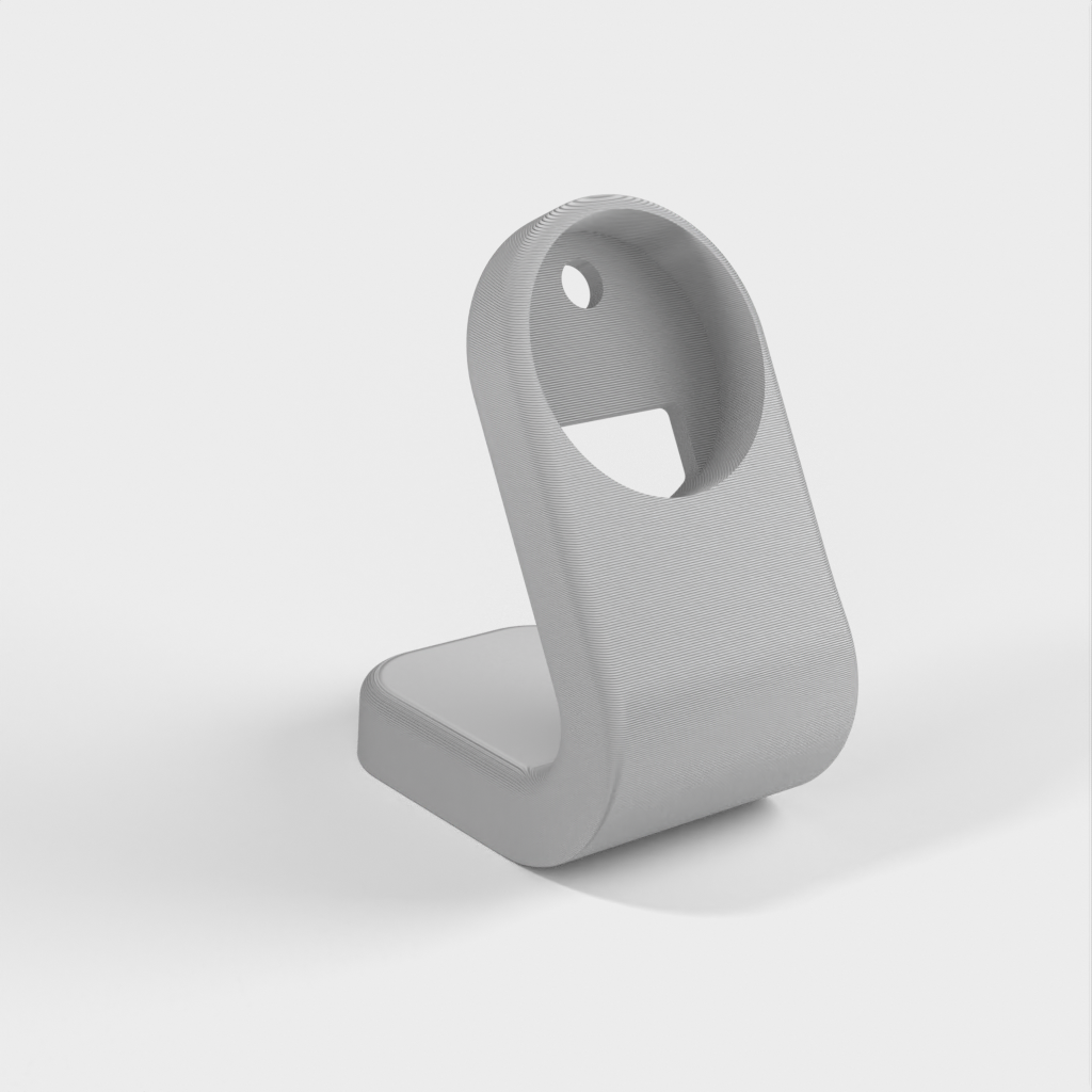 Eine einfache Ladestation für die Apple Watch, die mit doppelseitigem Klebeband an der Wand befestigt werden kann. Das Dock bietet Ihnen eine organisierte und praktische Möglichkeit, Ihre Apple Watch aufzuladen und gleichzeitig die Uhr an der Wand schön zur Schau zu stellen.