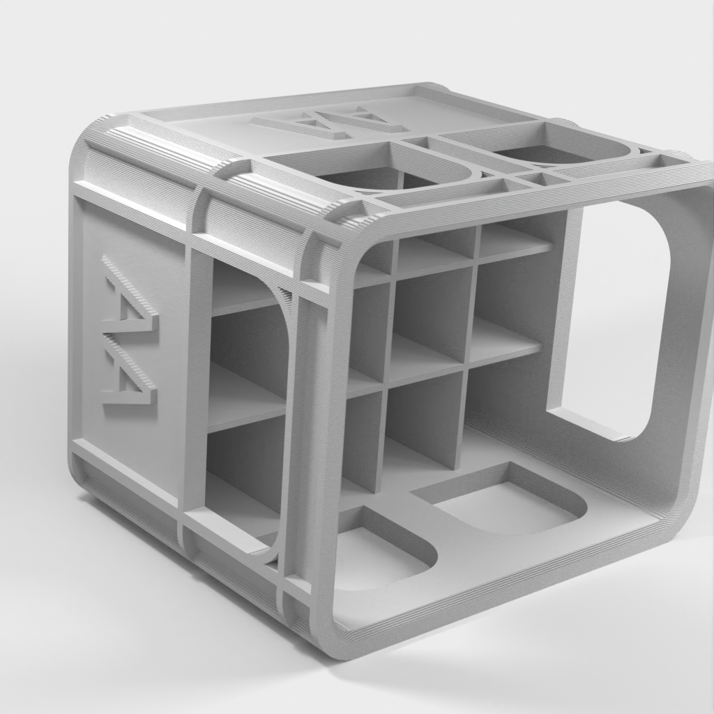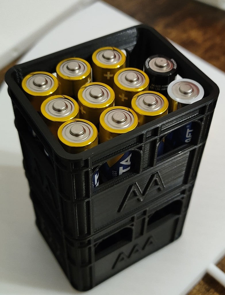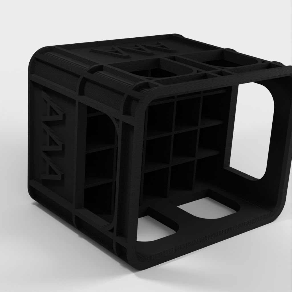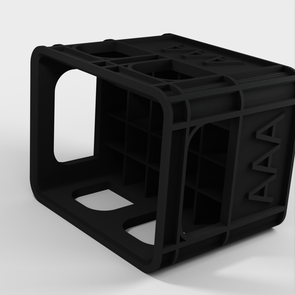 Dies ist ein stapelbarer Batteriekasten, der speziell für die effizientere Organisation Ihrer Batterien entwickelt wurde. Durch das einzigartige Design können diese Batteriekästen gestapelt werden, ohne dass eine zusätzliche Grundplatte erforderlich ist. Dieses Modell ist einfach zu bedienen und hält Ihre Batterien effizient. Jedes Batteriegehäuse besteht aus PLA-Material, das widerstandsfähig genug ist, um Ihre Batterien sicher aufzubewahren.