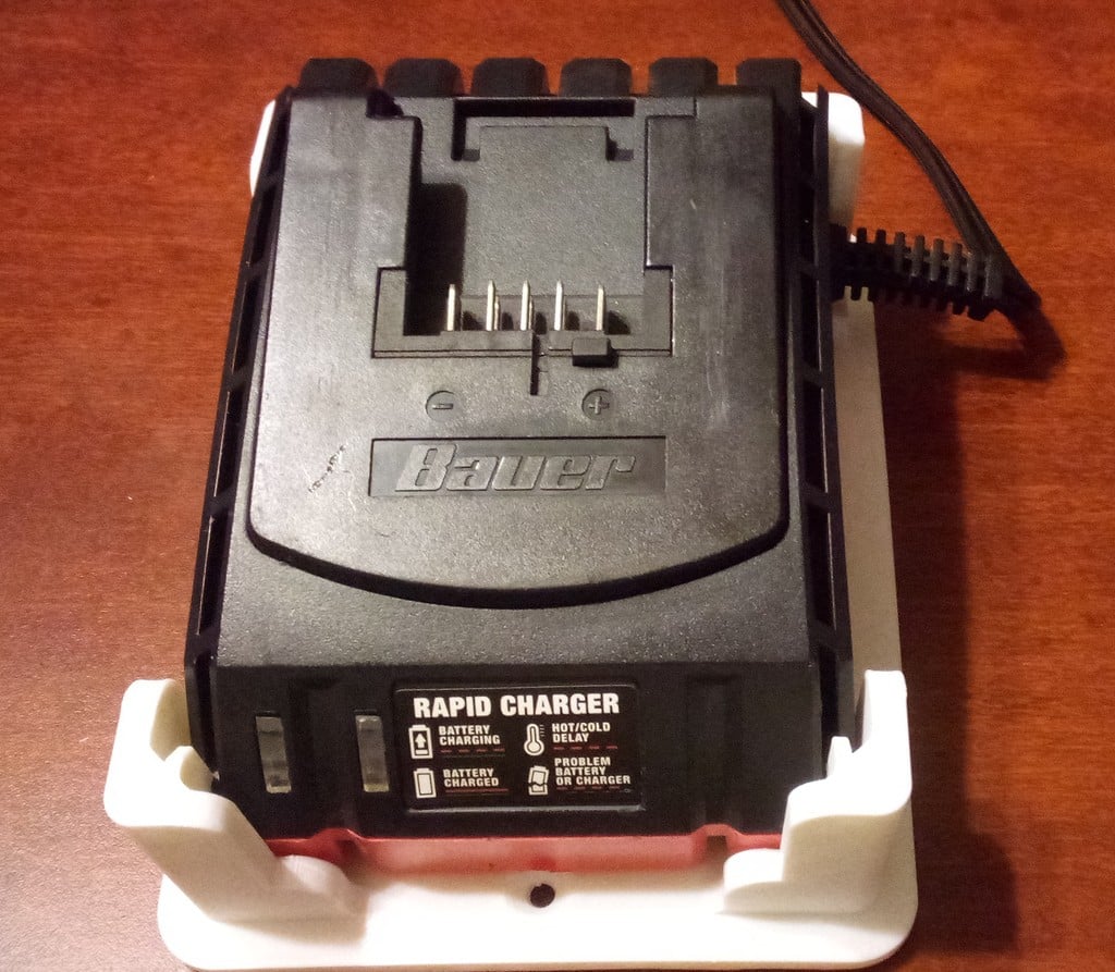 Dies ist eine Halterung zur Montage eines Bauer-Ladegeräts an einer Wand, einem Tisch oder einem Regal. Das Bauer-Ladegerät verfügt über keine integrierten Montageteile, daher hilft Ihnen dieses Zubehör dabei, Ihren Arbeitsplatz organisiert und aufgeräumt zu halten.