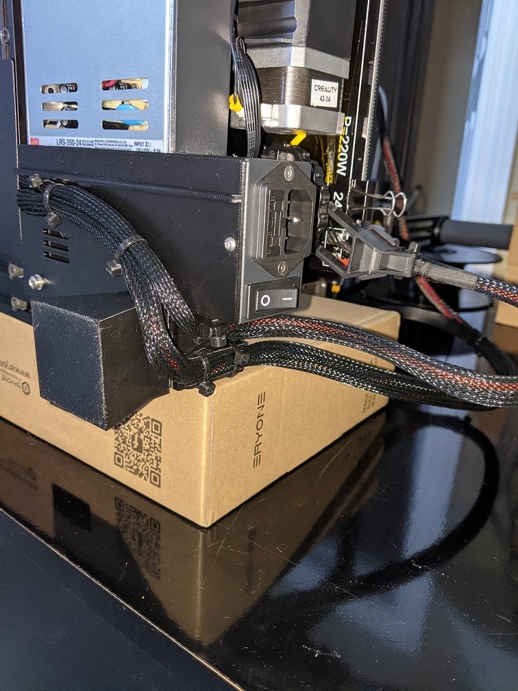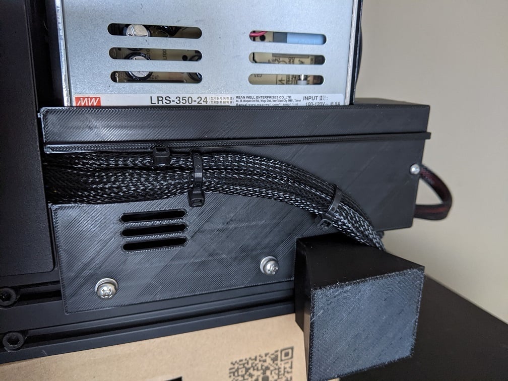 Durch die sichere Abdeckung trägt diese Komponente zu einem übersichtlicheren Druckeraufbau bei und unterstützt ein effizientes **Kabelmanagement**. Sie dient als schützender **Kabelhalter** für die Netzteilkabel und verhindert so ein Ziehen oder Verschieben der Anschlüsse während des Betriebs oder beim Bewegen des Druckers. Dies trägt dazu bei, die Integrität des Netzteils zu erhalten und die Lebensdauer des elektrischen Systems des Druckers zu verlängern. Die Abdeckung integriert sich nahtlos in die bestehende Struktur des Ender 3 V2 und bietet eine saubere und funktionale Lösung, ohne die Druckerleistung zu beeinträchtigen.