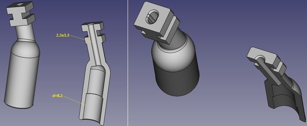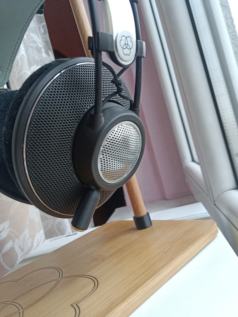 Der Bügel ist passgenau; die Bohrung für die Kabelführung ist elliptisch (2,3 x 3,3 mm), die Bohrung für den Klinkenstecker hat einen Durchmesser von 8,2 mm. Um eine optimale Passform zu gewährleisten, können geringfügige Anpassungen am Original-Kopfhörergehäuse erforderlich sein.