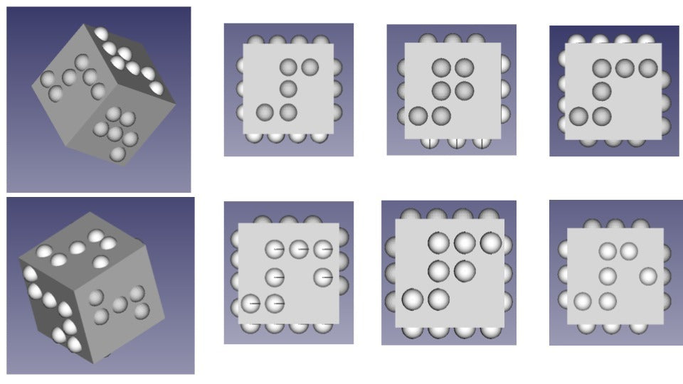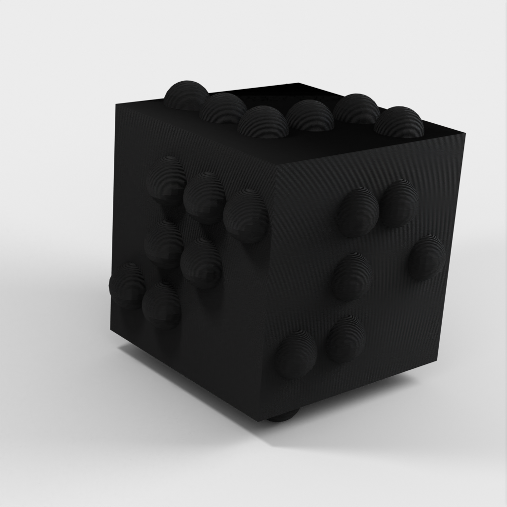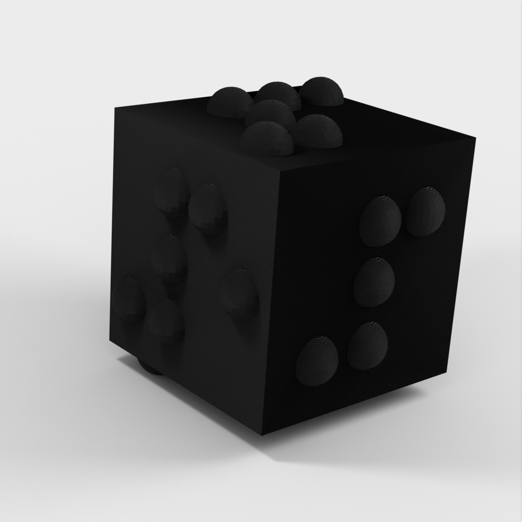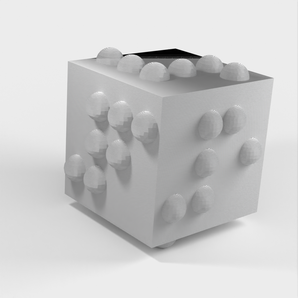 Gehörloses Spiel für Sehbehinderte. Damit können Blinde Würfelspiele spielen, indem sie die Oberseite berühren, um zu erfahren, welche Zahl sie gespielt haben.
