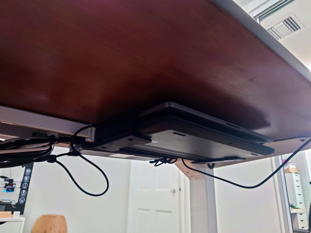 Optimieren Sie Ihren Arbeitsplatz mit dieser praktischen Untertischhalterung für zwei Laptops. Sie sorgt für eine übersichtlichere und platzsparendere Umgebung. Diese Lösung ist ideal für Benutzer, die mit mehreren Laptops arbeiten und wertvollen Platz auf dem Schreibtisch freigeben möchten.