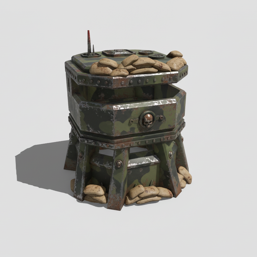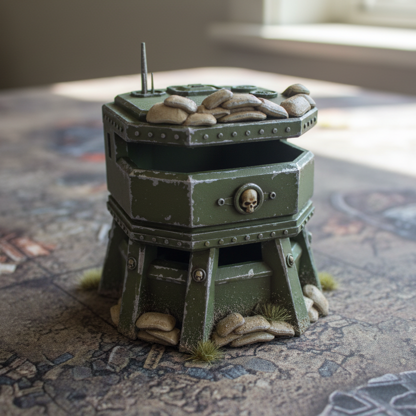 Dieses Double Pillbox Geländemodell verleiht Ihren Einheiten eine strategische Verteidigungsposition in Grimdark Tabletop-Wargames. Die detaillierte Konstruktion passt perfekt in postapokalyptische Szenarien und erhöht die Tiefe und Atmosphäre Ihrer Schlachten. Verwenden Sie es, um wichtige Positionen zu schützen und taktische Vorteile gegenüber dem Feind zu erlangen.