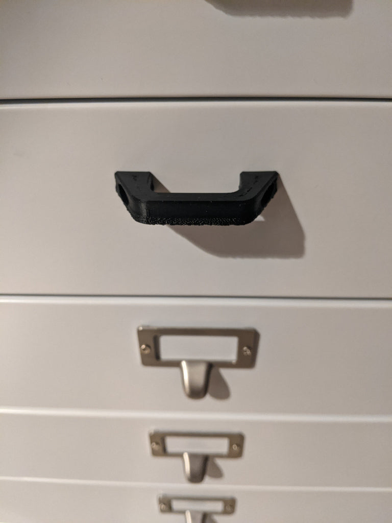 Ersatzgriff für den Becker-Trolley der Home-Decor-Kollektion. Passend für alle Aufbewahrungswagen der Home Decorators Collection Becker-Reihe mit mehreren Schubladen. Ersetzt die originalen, extrem zerbrechlichen Griffe im Aktenschrankstil mit den Originalschrauben. Die Löcher haben in der Mitte einen Abstand von 52 mm.
