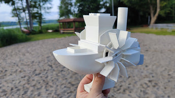 - Angetrieben durch zwei Schaufelräder für effizienten Vortrieb