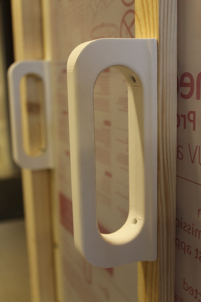 Dabei handelt es sich um Griffe für Schiebetüren, die von Dirk Feyerabend entworfen wurden. Sie sind kompatibel mit Schrauben und Muttern mit einem Durchmesser von 3 mm. Dieser Hebetürgriff ist praktisch, einfach zu installieren und eine elegante Ergänzung für Ihre Schiebetür.