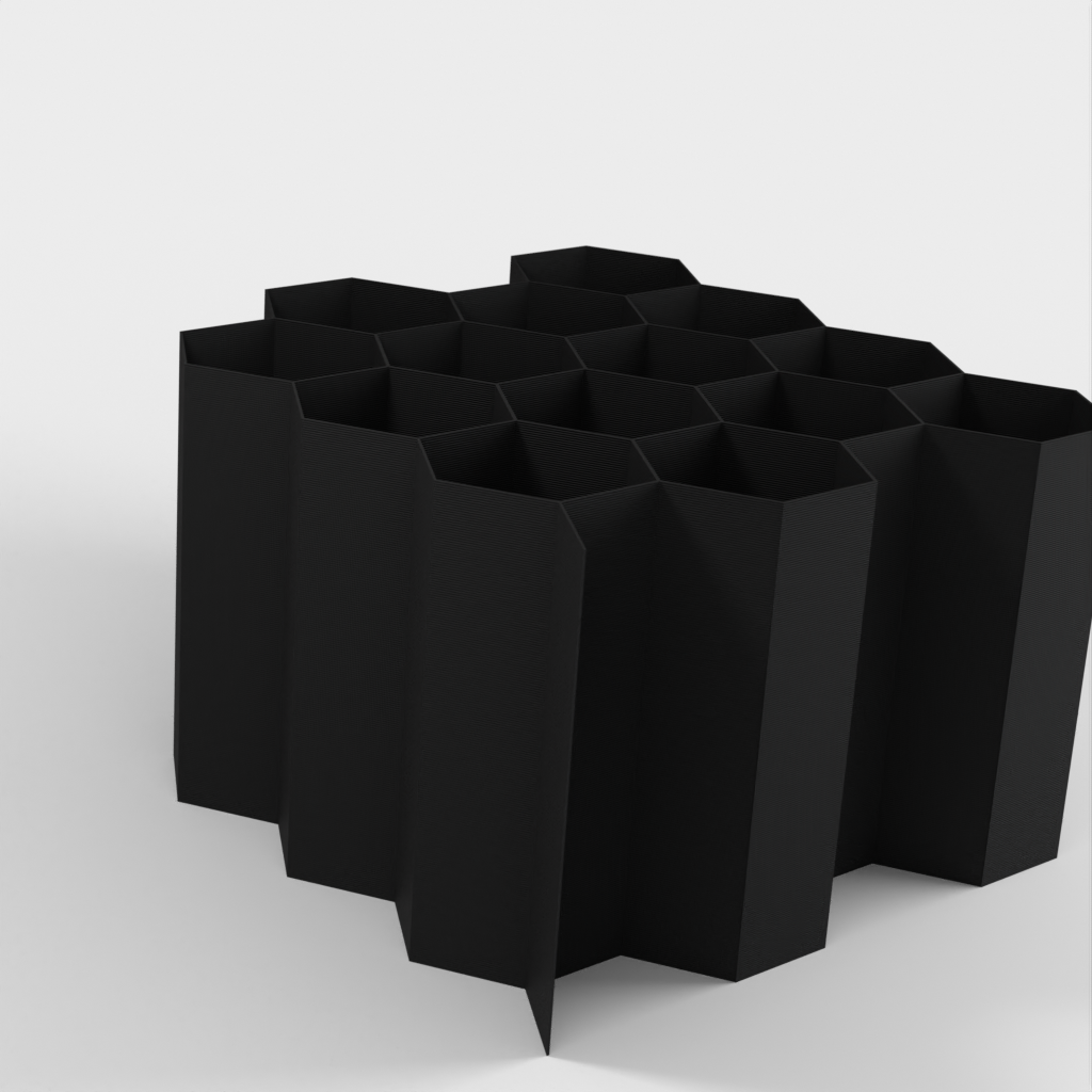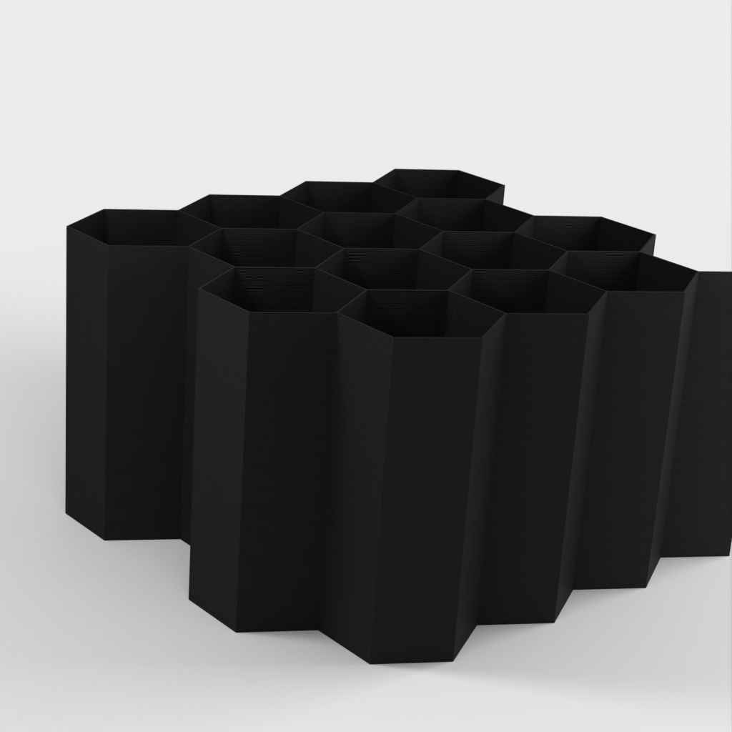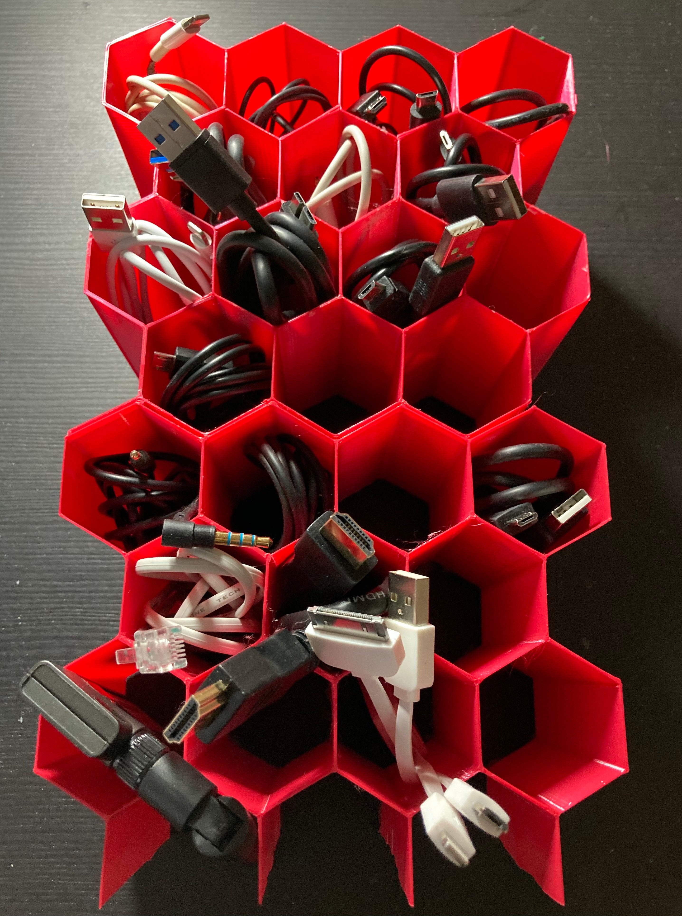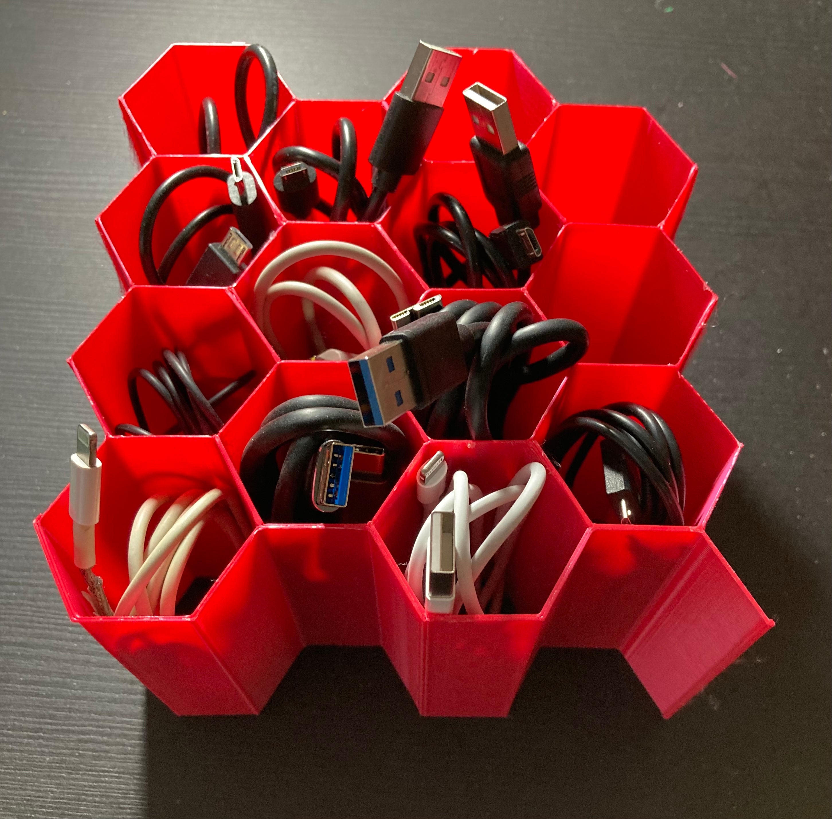 Der Hex Cable Organizer ist ein modulares Kabelaufbewahrungssystem, mit dem Kabel schnell lokalisiert und aufbewahrt werden können, ohne dass sie sich verheddern. Kabel können sauber in die sechskantförmigen Schlitze eingeführt werden. Weitere Kabelspeicherplätze können problemlos hinzugefügt werden.