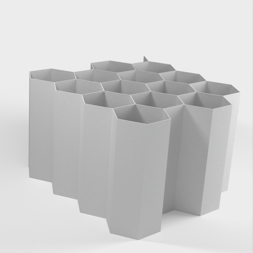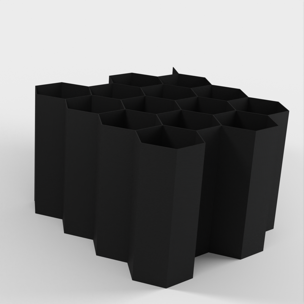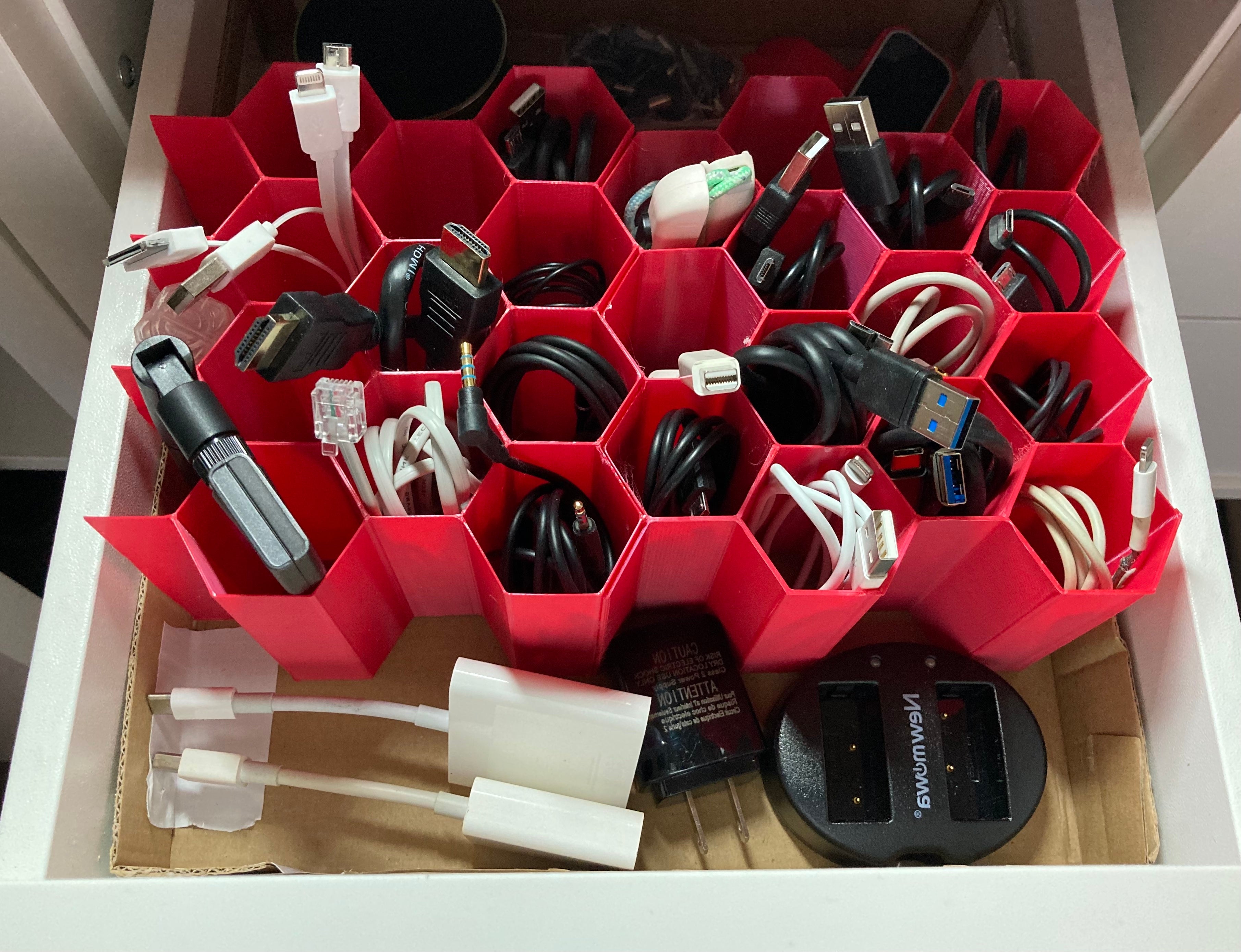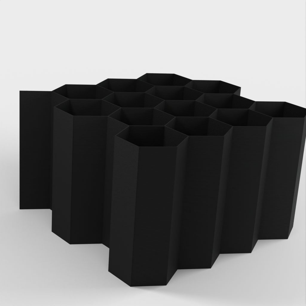 Der Hex Cable Organizer ist ein modulares Kabelaufbewahrungssystem, mit dem Kabel schnell lokalisiert und aufbewahrt werden können, ohne dass sie sich verheddern. Kabel können sauber in die sechskantförmigen Schlitze eingeführt werden. Weitere Kabelspeicherplätze können problemlos hinzugefügt werden.