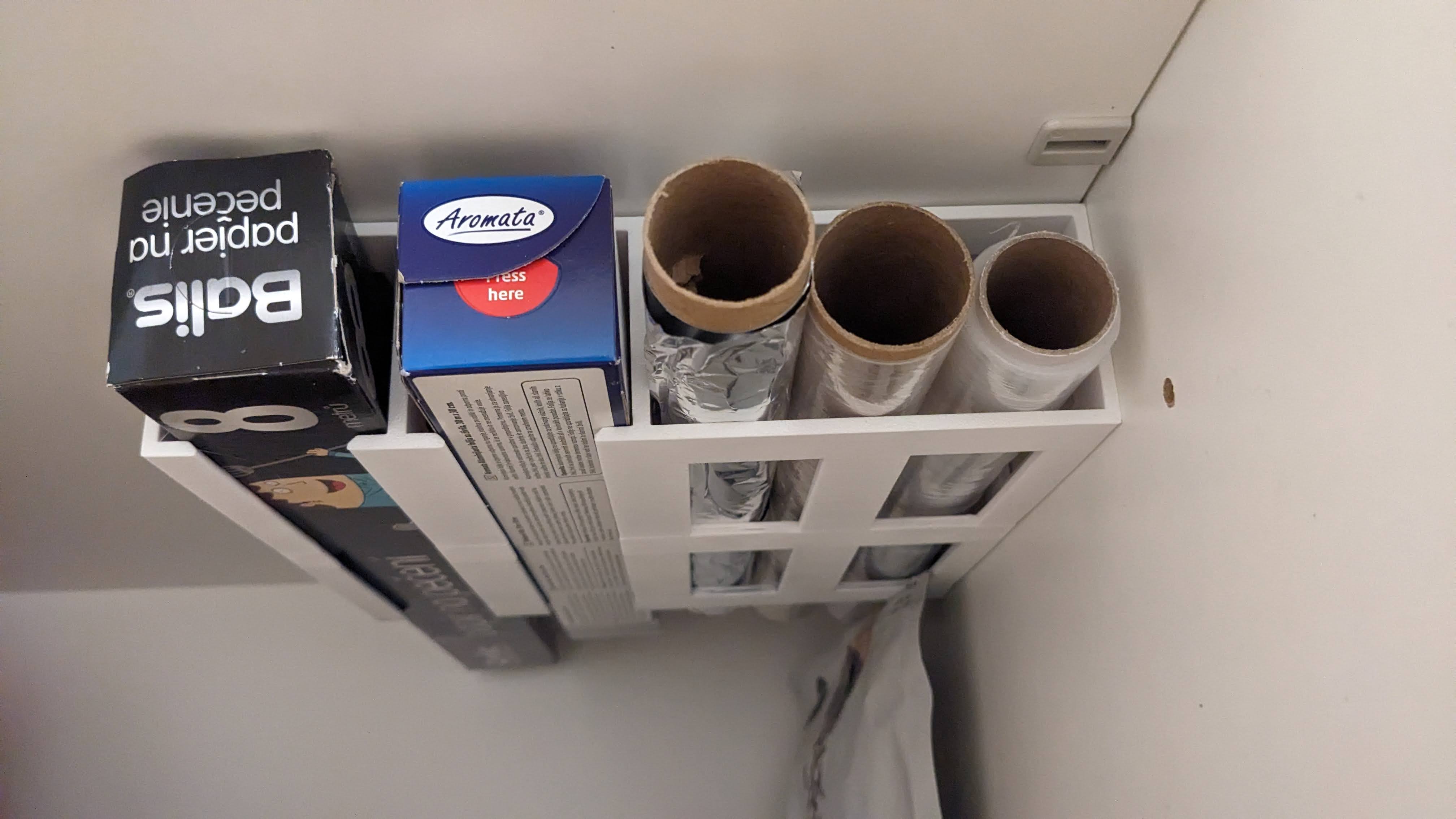 • Hält Alu- und Frischhaltefolienrollen geordnet