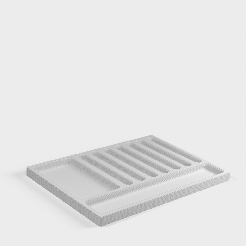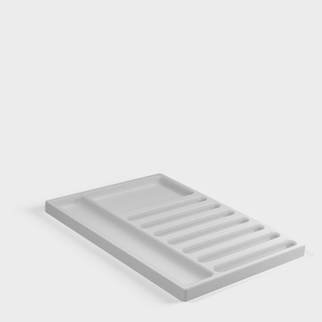 Diese praktische Ablage vereinfacht die Wartung und den Austausch von Schlössern. Sie verfügt über mehrere speziell geformte Rillen, die das Ordnen und Trennen von Schlossstiften, Federn und anderen Kleinteilen erleichtern. Durch die Sortierung und leichte Zugänglichkeit aller Teile trägt die Ablage zu einer effizienteren und präziseren Handhabung von Schließmechanismen bei. Sie ist ein nützliches Werkzeug für alle, die mit Schlössern arbeiten und den Überblick über die vielen kleinen, wichtigen Teile behalten möchten.
