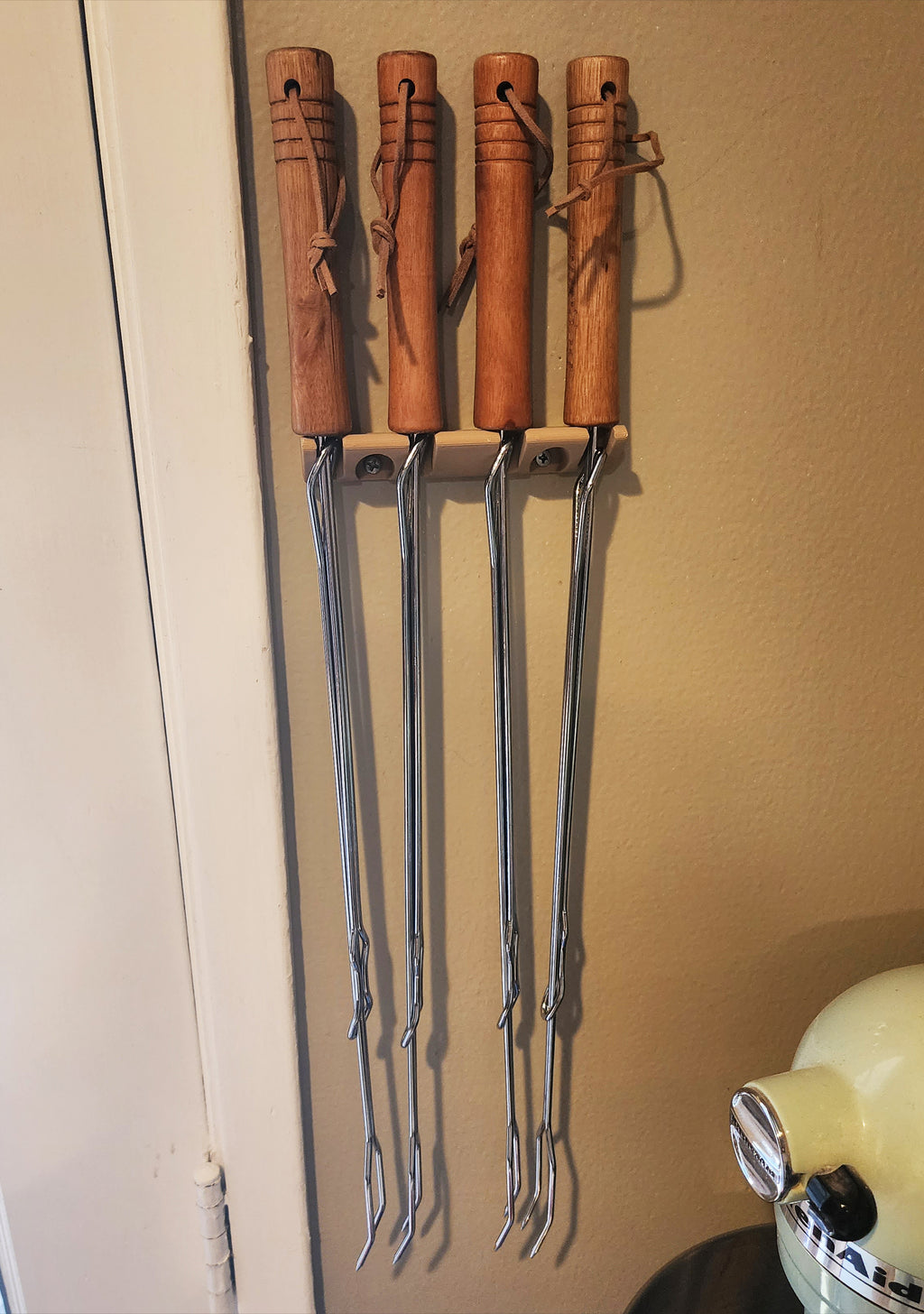 <p>Dieser Brathakenständer bietet eine praktische und effiziente Wandaufbewahrungslösung für Ihre ausziehbaren Haken und verschiedene Utensilien. Er bietet eine robuste und langlebige Organisationsmöglichkeit und ist eine funktionale Alternative zu herkömmlichen Holz- oder Metallstangen.</p><p>Mit Platz für vier Brathaken mit jeweils 10 mm Durchmesser hilft Ihnen dieser Wandhalter, Ordnung in Ihrer Küche, im Außenbereich oder sogar beim Camping zu halten. Die versenkten Schraubenlöcher sorgen für eine diskrete Montage und ein sauberes und aufgeräumtes Erscheinungsbild. Darüber hinaus ist das Design skalierbar, sodass Sie den Ständer bei Bedarf an die Aufbewahrung größerer Gegenstände anpassen können.</p><p>Ob Sie Ihr Grillzubehör für Hot Dogs, Marshmallows oder andere Lagerfeuerutensilien organisieren müssen, dieser Hakenständer bietet eine einfache und griffbereite Möglichkeit, Ihre wichtigsten Utensilien griffbereit zu halten.</p>