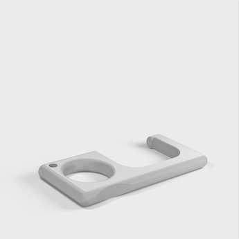 Ein einfacher Türgriff, der leicht an einem Schlüsselring befestigt werden kann. Es funktioniert mit den meisten Türgriffen. Bei schweren Türen kann es jedoch zum Bruch kommen, typischerweise in Industrie- oder bestimmten Gewerbegebäuden.
