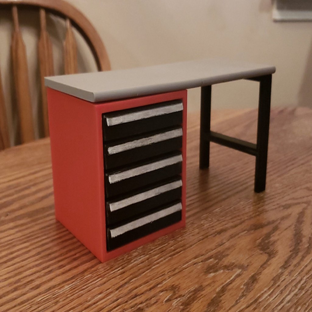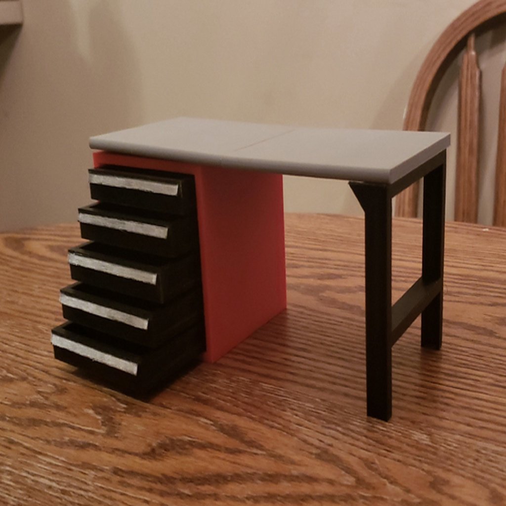 Dieser maßstabsgetreue Werkstatttisch mit Werkzeugschrank ist eine detailreiche Ergänzung für jede Miniaturgarage oder Werkstatt. Im Maßstab 1:10 gestaltet, passt er perfekt in RC-Fahrzeug- und andere Modellbauumgebungen und schafft so einen authentischen Rahmen für Ihre Hobbyprojekte. Der Werkzeugschrank ist voll funktionsfähig und verfügt über Schubladen, die Ihnen eine effiziente Organisation Ihrer Kleinteile und Miniaturwerkzeuge ermöglichen. Dies sorgt für einen mühelosen Arbeitsablauf und erleichtert die Organisation, sodass Ihr Modellaufbau in puncto Funktionalität und Detaillierungsgrad einer „Konkurrenzsuche“ standhält.
