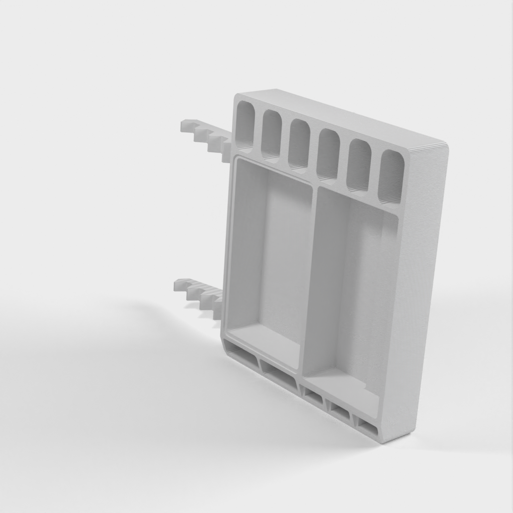 Schreibtisch-Organizer, der Ihren Schreibtisch aufgeräumt und organisiert hält. Es gibt Platz für Marker, USB-Sticks und Karten. Zusätzlich wurde ein kleines Fach für diverse Kleinteile wie Clips, Gummibänder und mehr hinzugefügt. Dieser Organizer ist ideal, um Ordnung in Ihren Arbeitsplatz zu bringen.