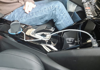 Die Halterung positioniert das Telefon in einem 30°-Winkel vom Fahrer weg, was die Sicht während der Fahrt optimiert. Integrierte Öffnungen für Ladekabel sorgen dafür, dass Ihr Gerät während der Fahrt mit Strom versorgt bleibt. Ein diskretes Fach unter dem Smartphone-Bereich ermöglicht die Aufbewahrung überschüssiger Kabel und reduziert so das Durcheinander.