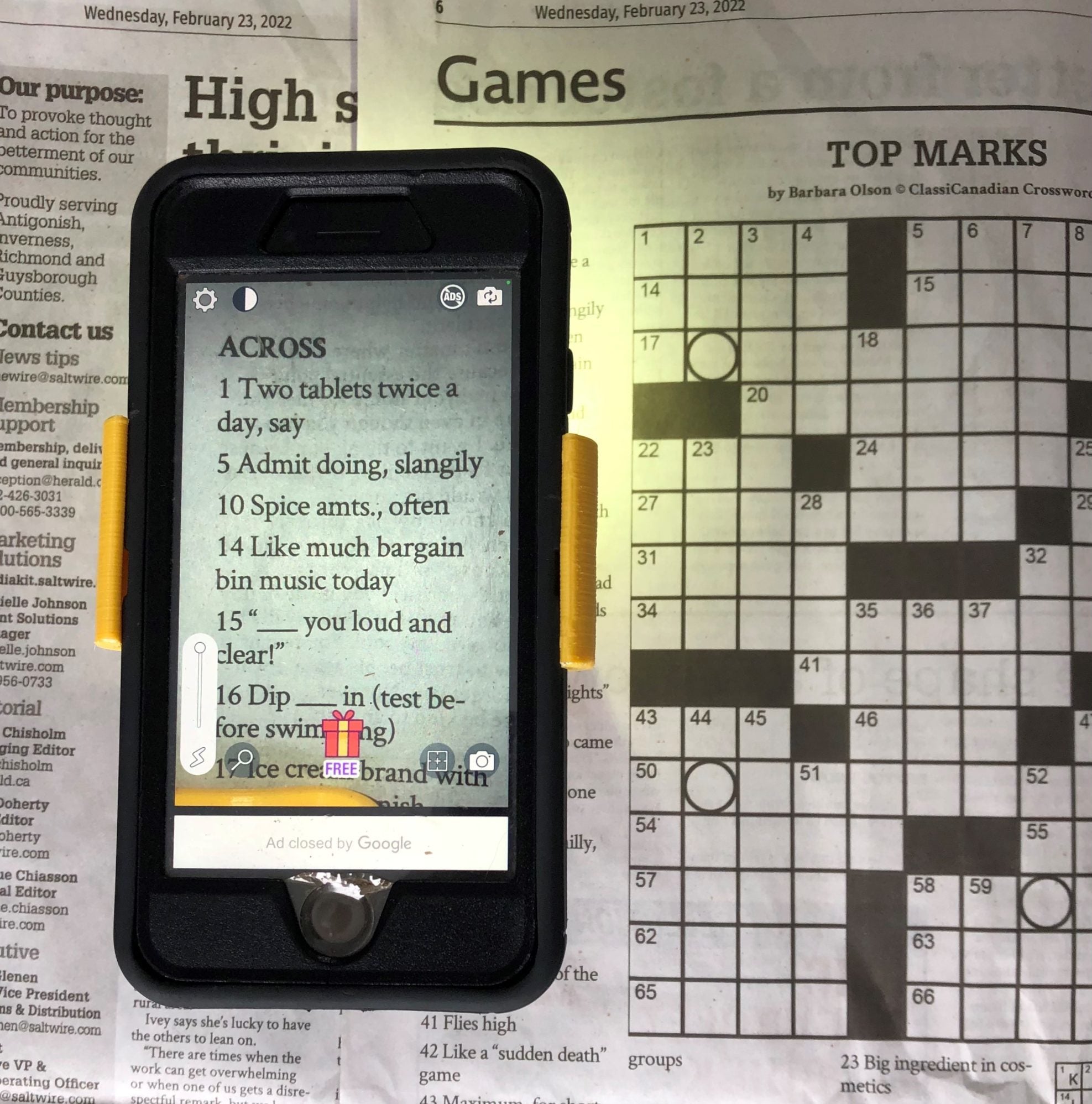 Dies ist ein Smartphone-Ständer, der Ihr Smartphone in eine Lupe verwandelt. Der Ständer ist eine kostengünstige Lösung, um Ihr Telefon hochzuhalten, während Sie damit Dinge auf Ihrem Bildschirm vergrößern. Dieser Smartphone-Ständer eignet sich besonders für Menschen mit eingeschränkter Sehkraft oder Fingerfertigkeit, da er dabei hilft, stabile Bilder zu machen. Der Ständer passt auf die meisten Smartphones mit einer Breite von 60 mm – 85 mm.