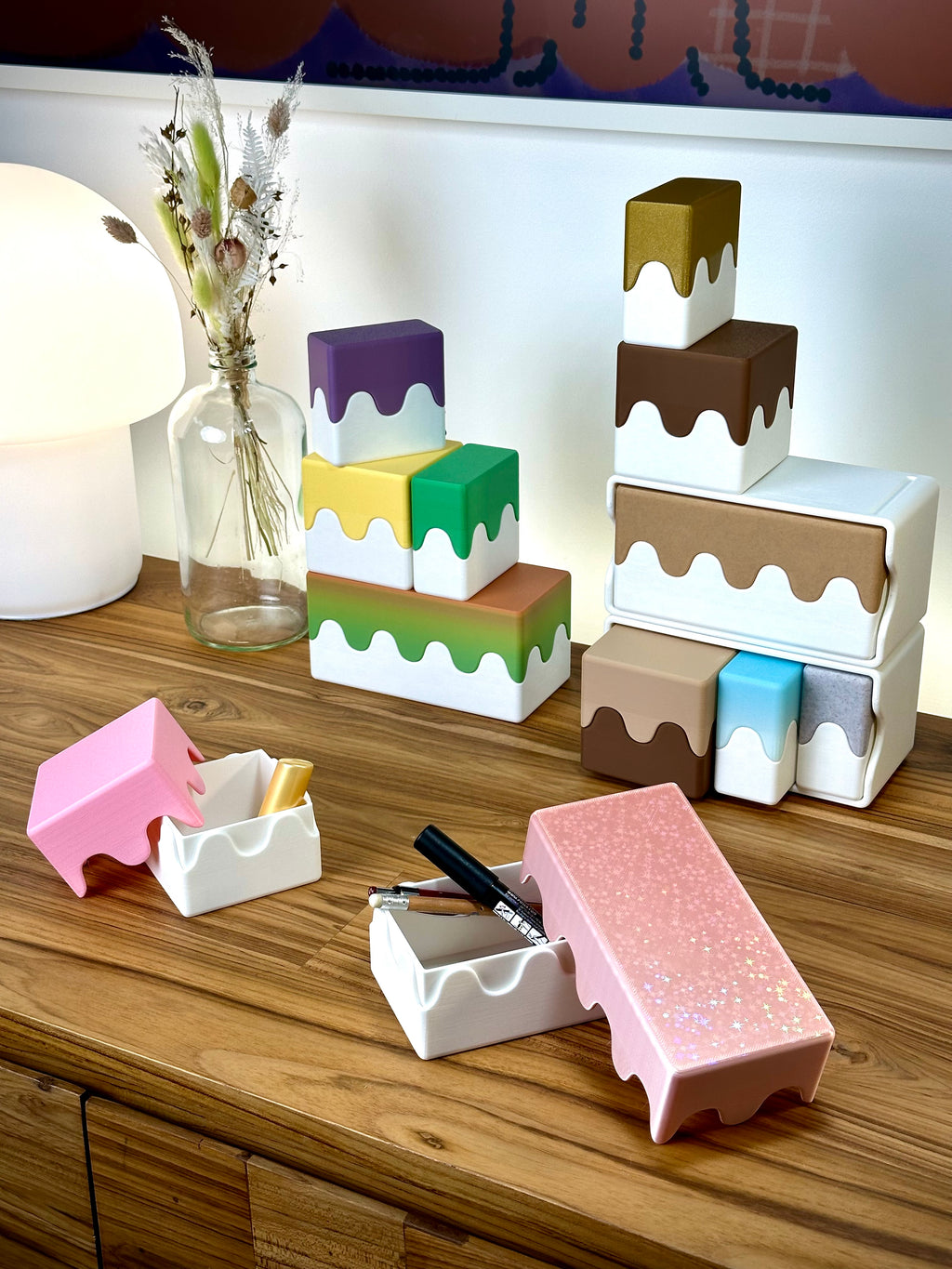 Wir präsentieren die Wavy Boxes , ein vielseitiges Set aus drei stapelbaren Aufbewahrungsboxen in den Größen klein, mittel und groß. Diese Boxen eignen sich ideal für die Organisation Ihres Schreibtischs, Basteltisches, Küchengewürzregals oder Eingangsbereichs und bieten Ihnen endlose Aufbewahrungsmöglichkeiten.