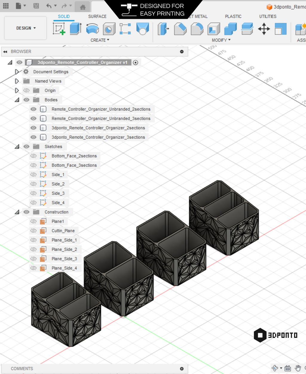 Dieser moderne Fernbedienungs-Organizer aus dem 3D-Drucker sorgt für Ordnung und Übersicht in Ihrem Zuhause. Er ist mit zwei oder drei Fächern erhältlich und bietet Platz für mehrere Fernbedienungen – auch größere Modelle, beispielsweise für Klimaanlagen. Die offenen Fächer ermöglichen Ihnen den einfachen Zugriff auf die Tasten und die Bedienung Ihrer Geräte, ohne die Fernbedienungen aus der Halterung nehmen zu müssen.