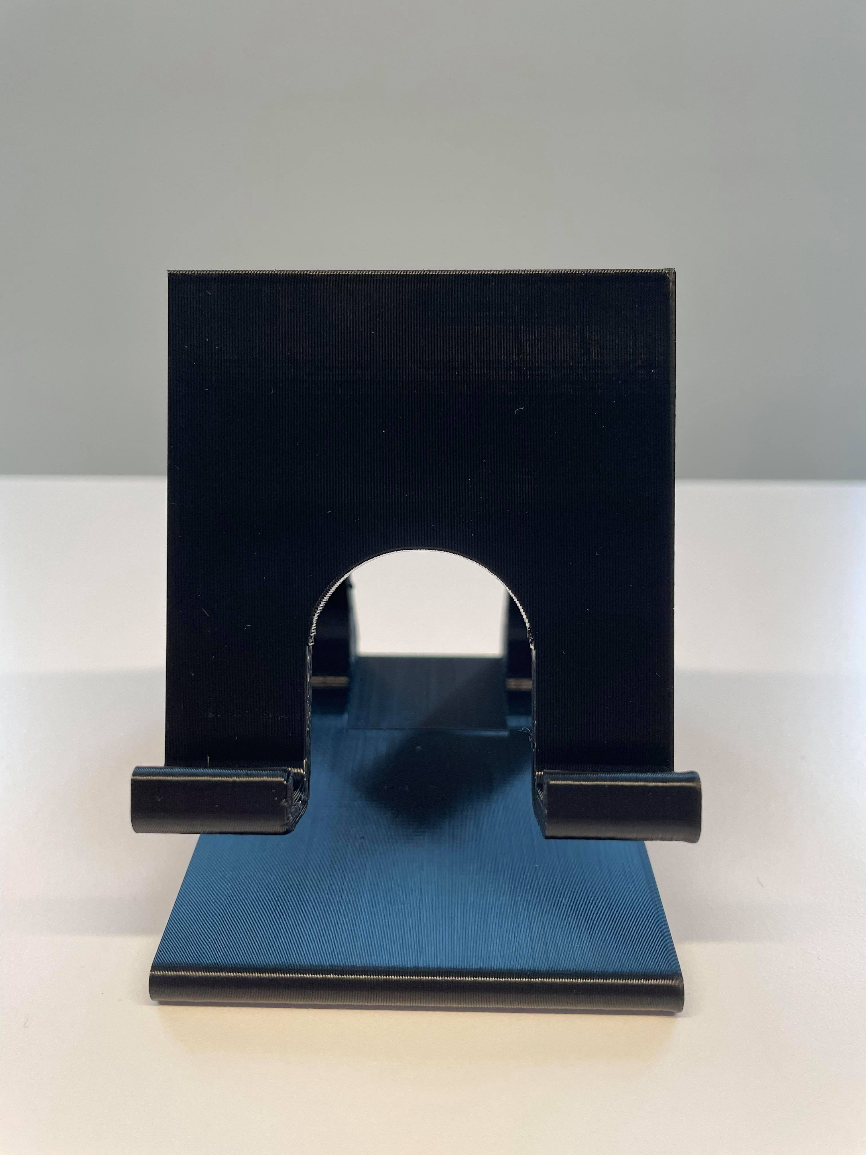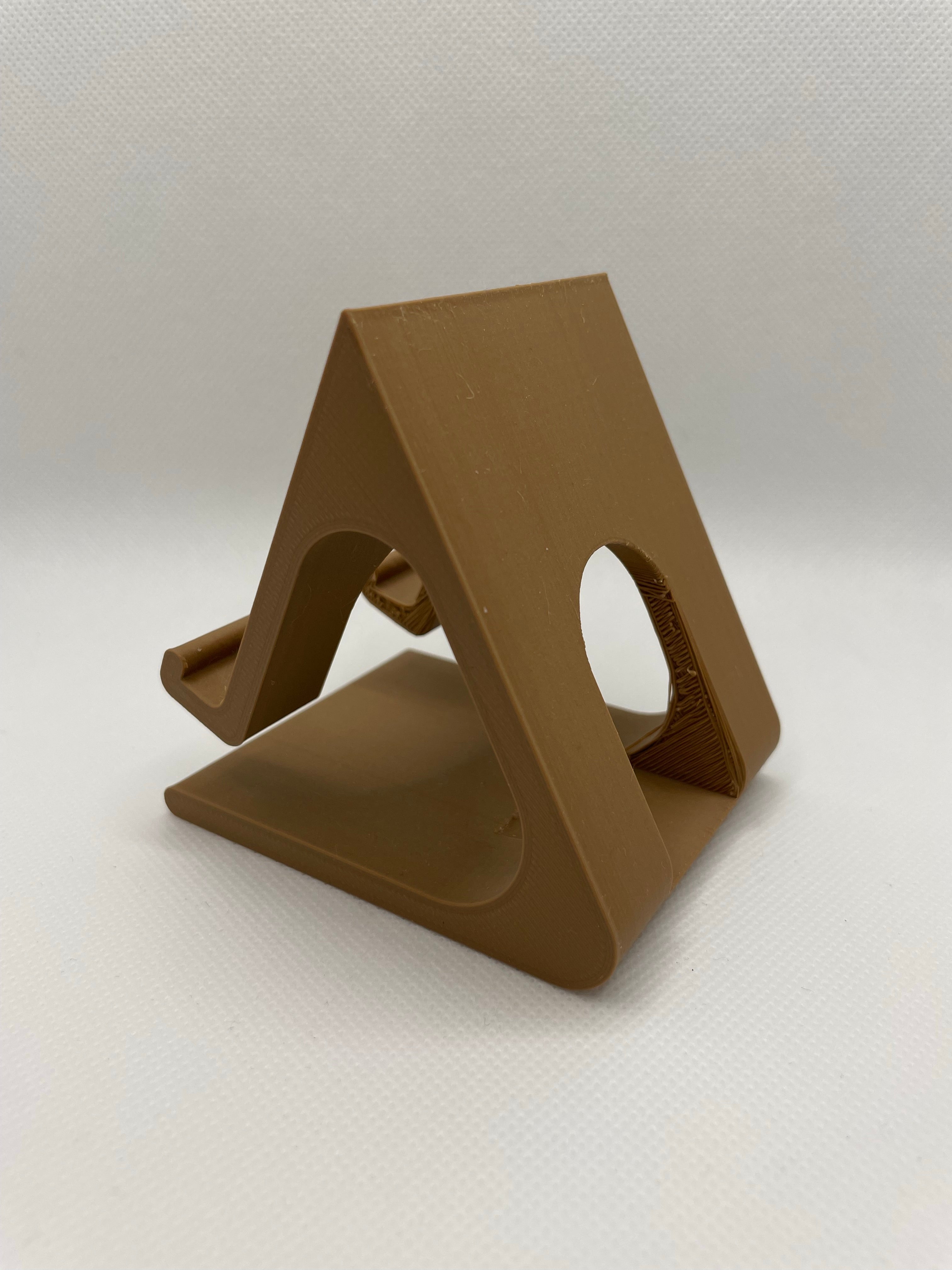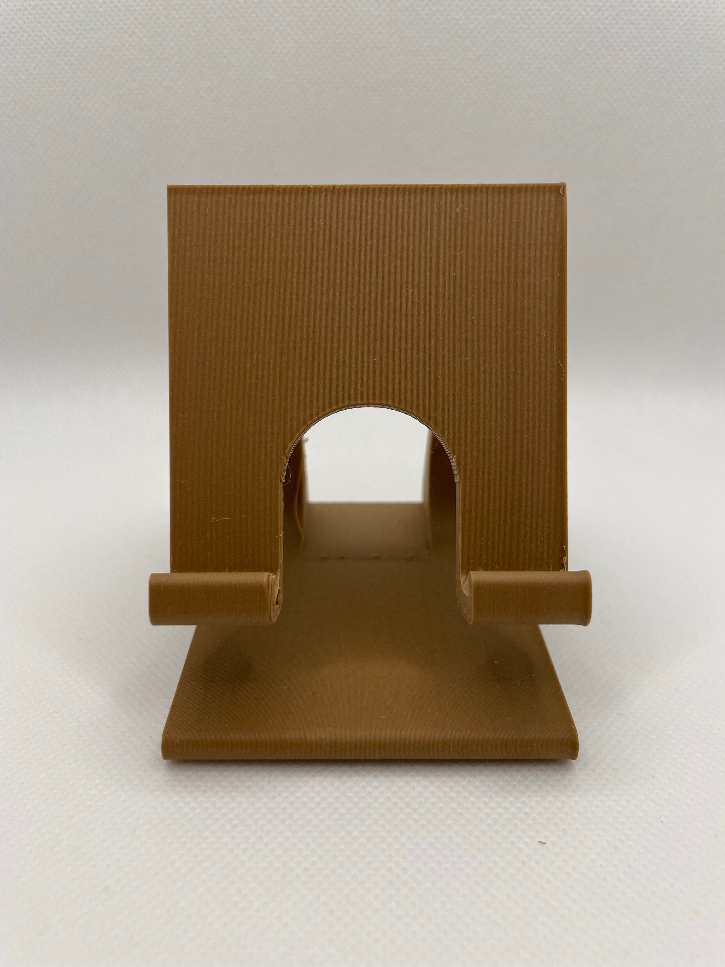 Universeller Telefonständer. Das Kabel wird durch das Loch geführt und kann dann zum Telefon geführt werden.