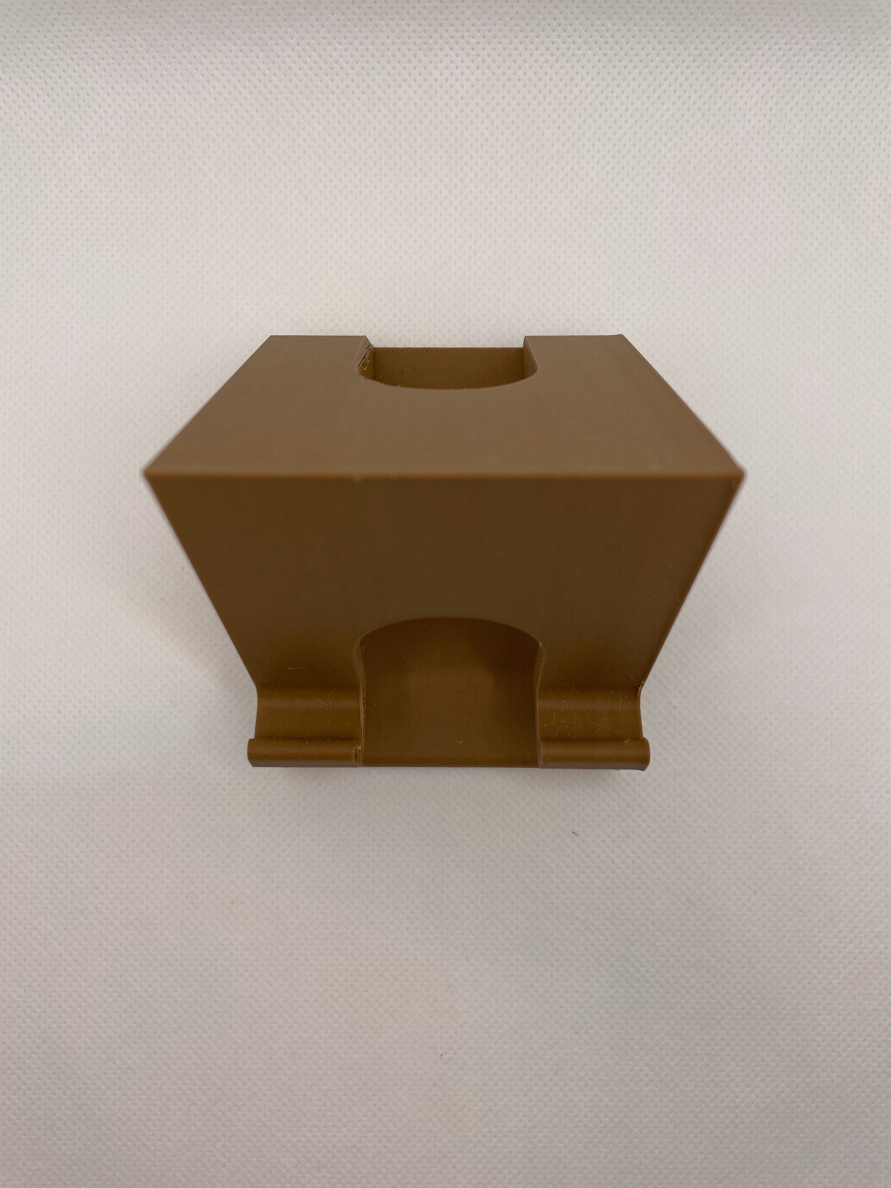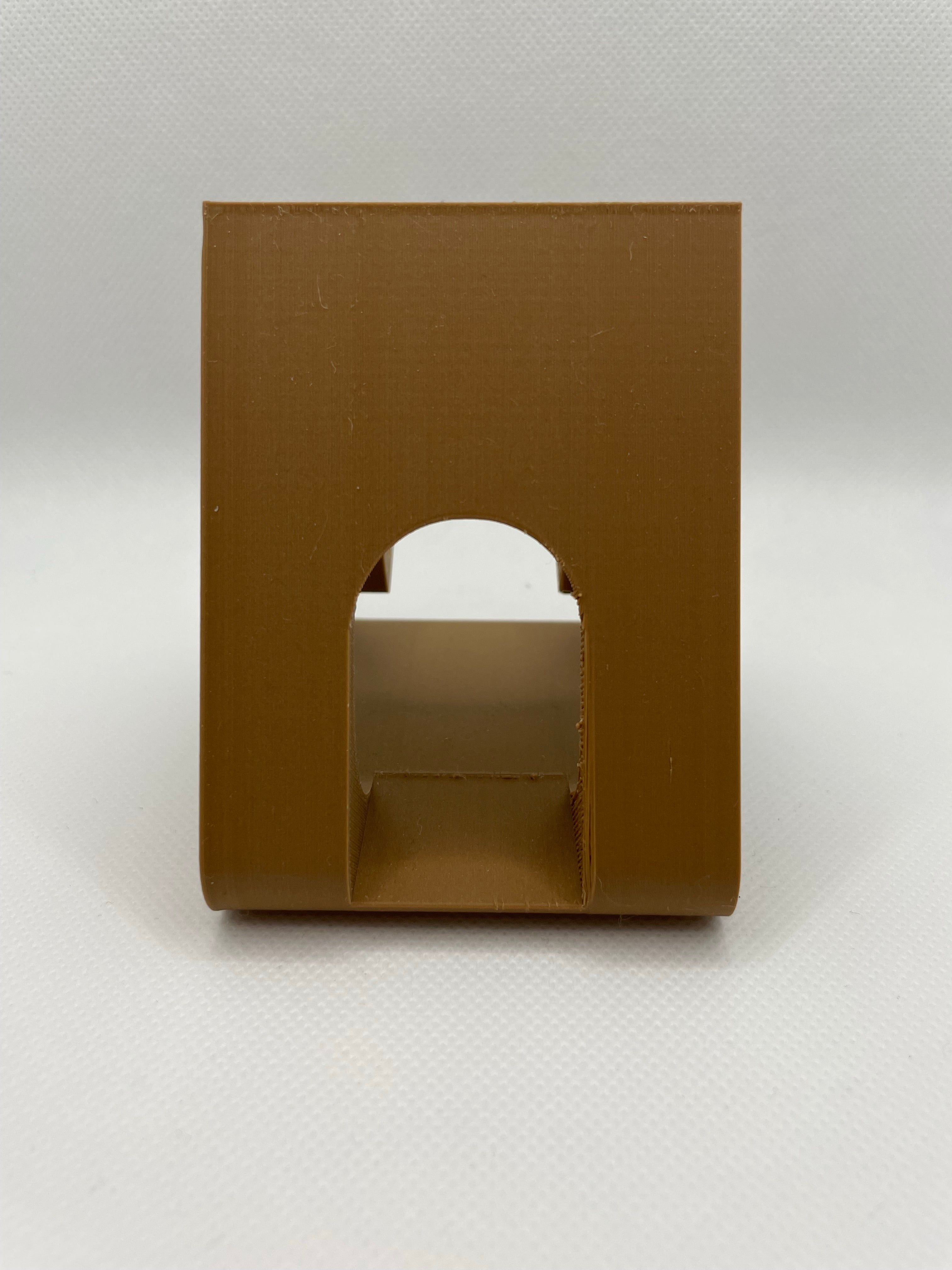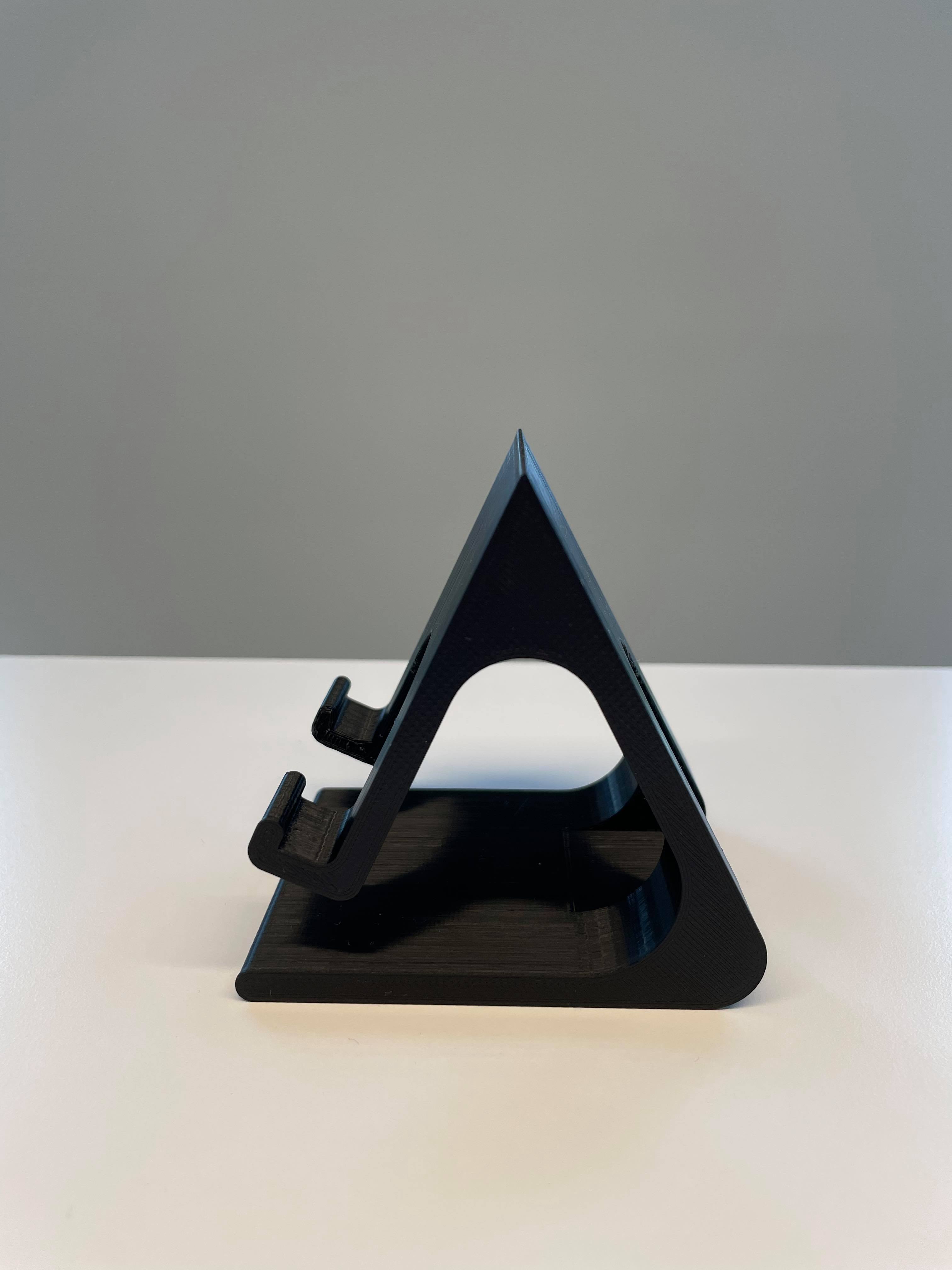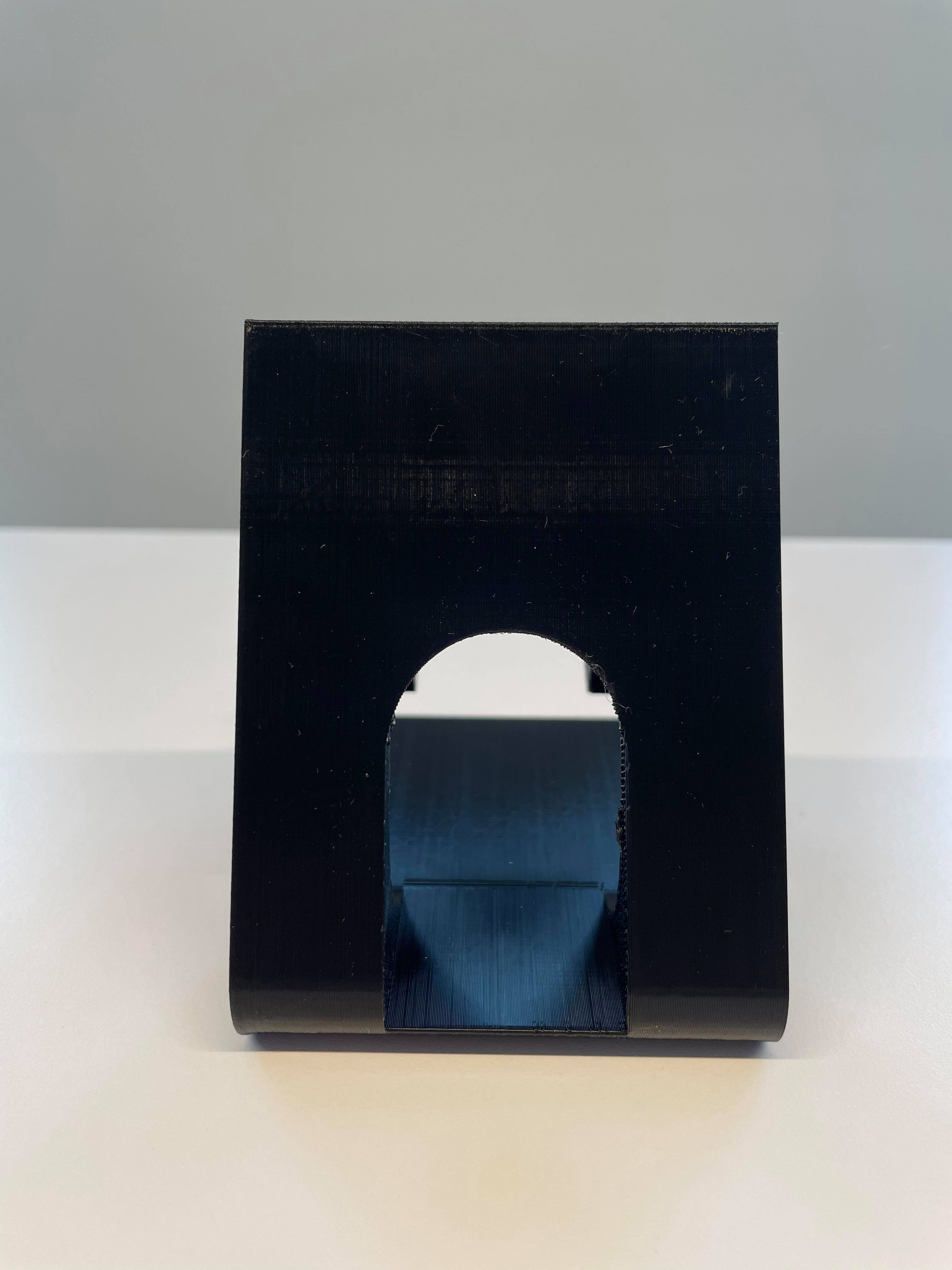 Universeller Telefonständer. Das Kabel wird durch das Loch geführt und kann dann zum Telefon geführt werden.