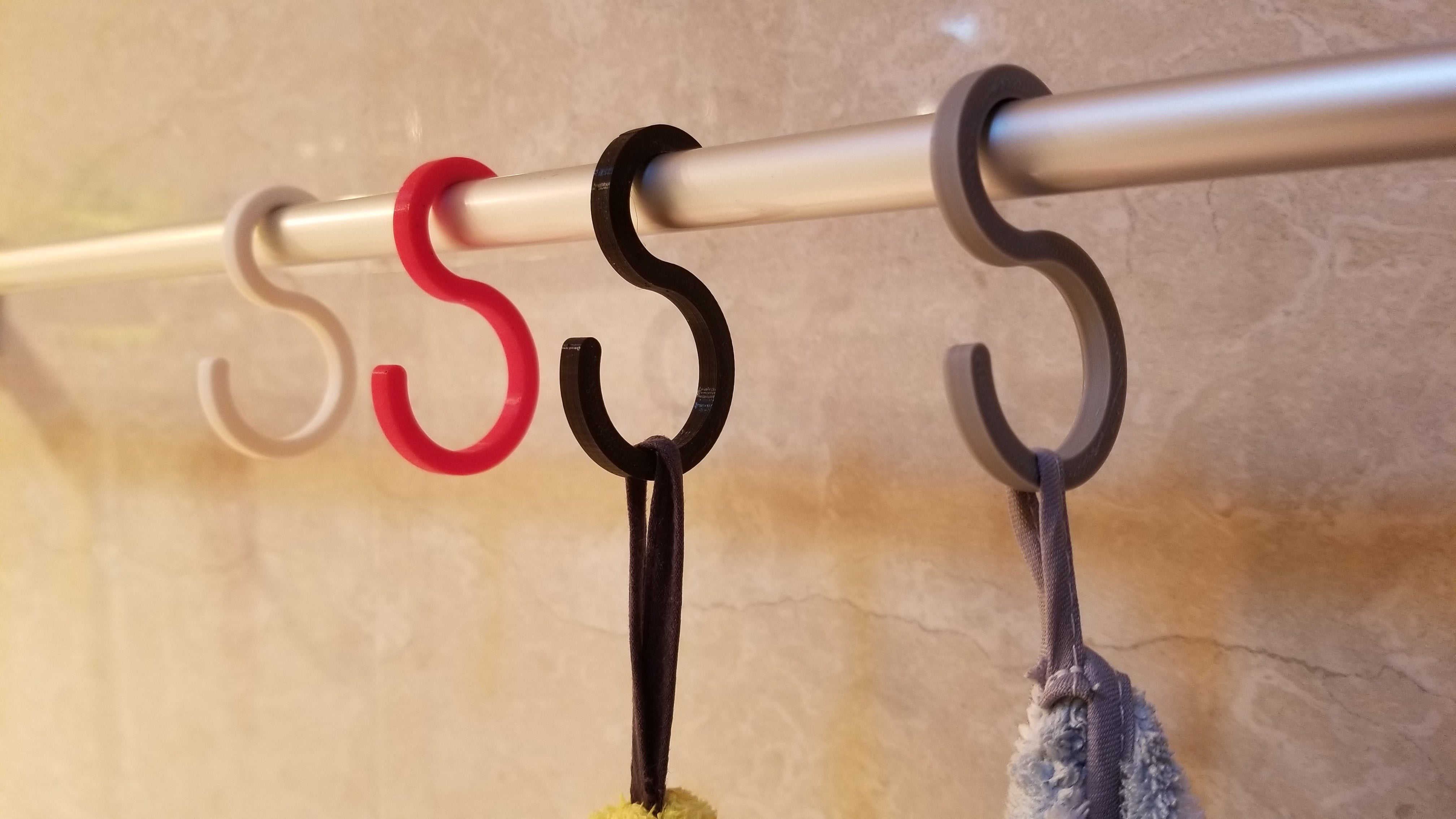 Diese individuellen S-Haken können nach Ihren Wünschen angepasst werden. Sie eignen sich ideal für den Einsatz im Bad und in der Küche und lassen sich ohne großen Materialaufwand sehr schnell bedrucken.