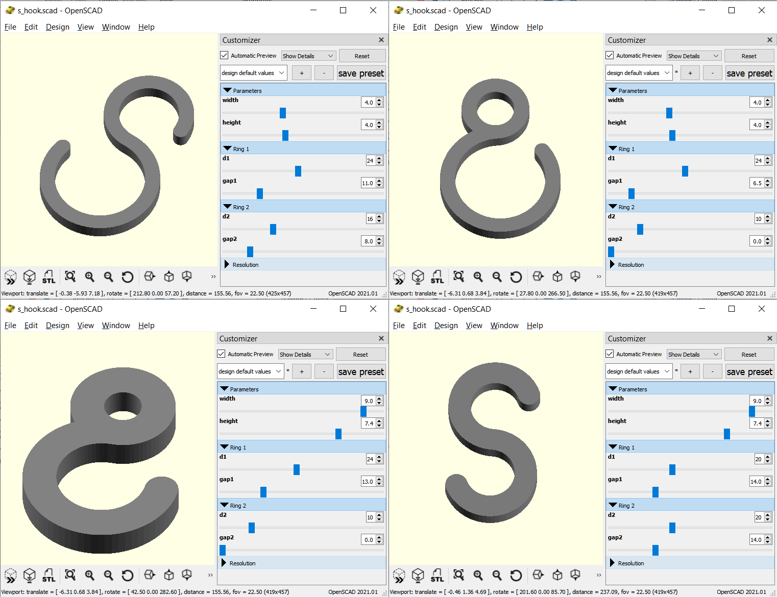 Anpassbare OpenSCAD S-Haken für Bad und Küche