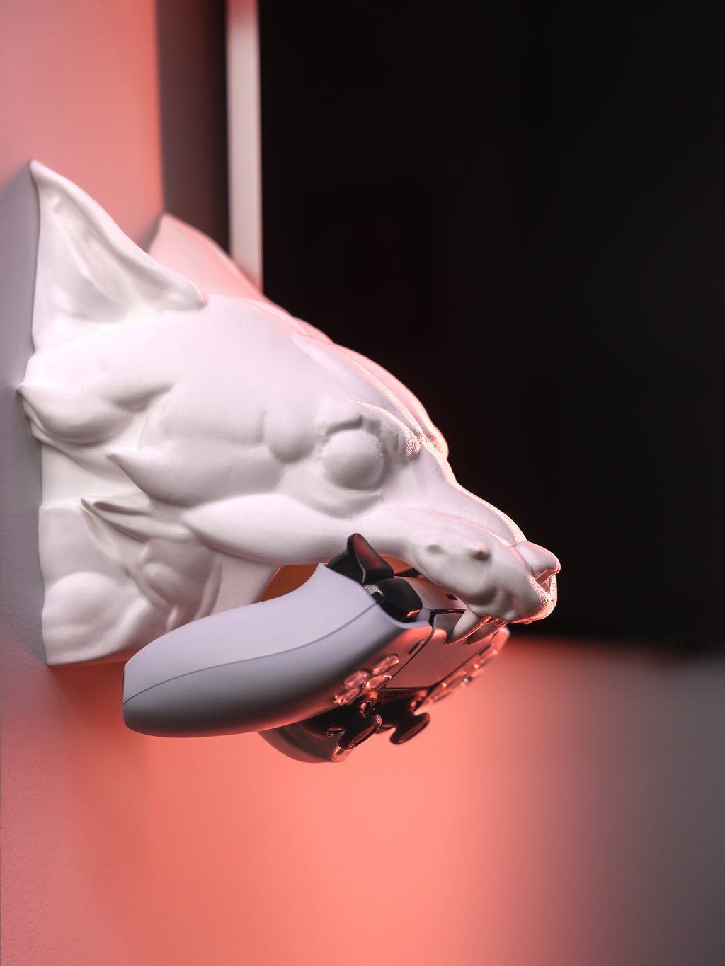 Wir präsentieren den einzigartigen Wolf Controller Stand aus der beliebten Creature-Serie. Diese stilisierte Kopfskulptur ist nicht nur ein dekoratives Element, sondern auch eine praktische Aufbewahrungslösung für Ihre Lieblings-Spielkonsolen-Controller. Mit zwei Anzeigeoptionen – entweder an der Wand montiert oder flach auf dem Schreibtisch liegend – passt er sich problemlos Ihrem Setup an.