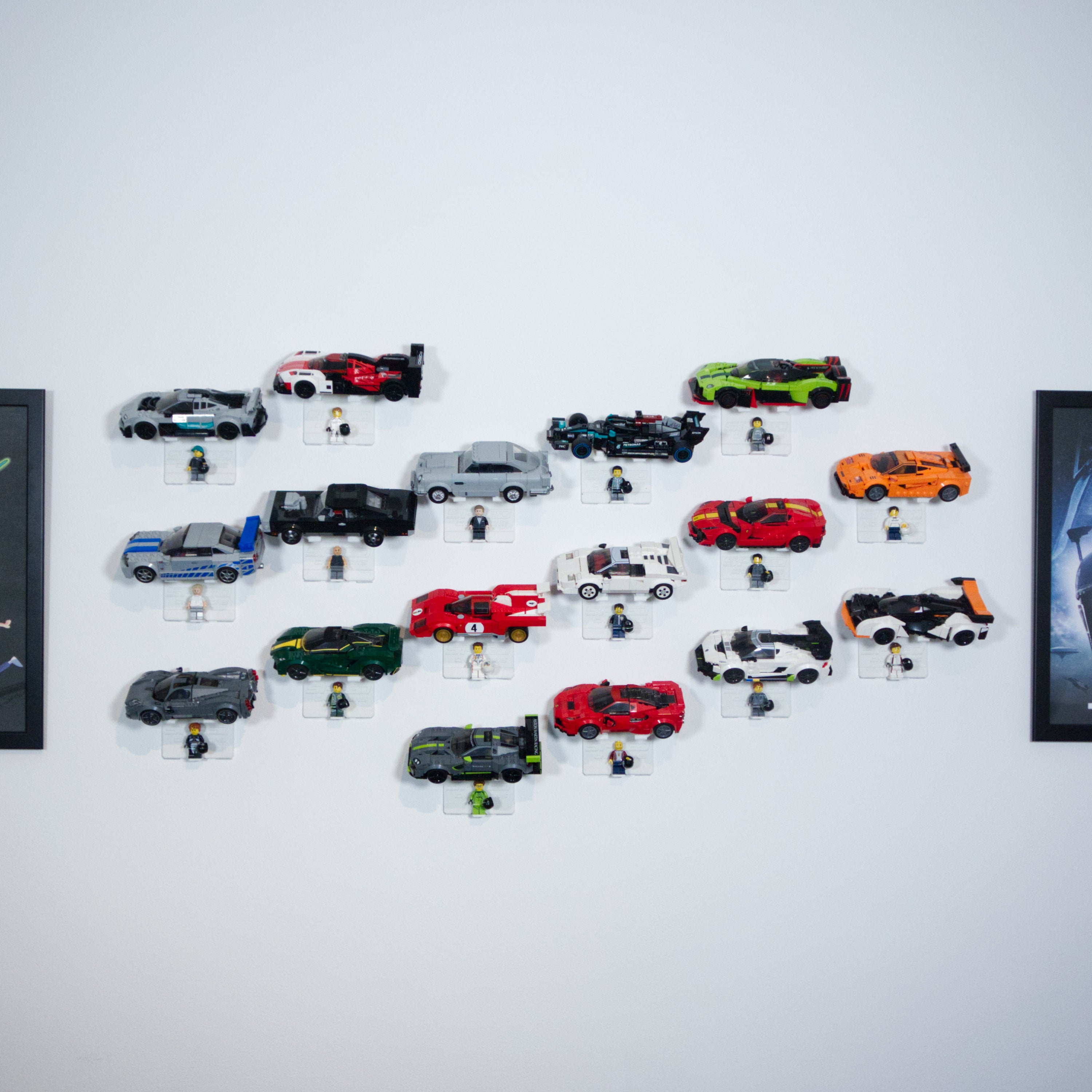 Dette vægophæng gør det muligt at udstille dine LEGO Speed Champions biler på væggen. Systemet inkluderer forskellige adaptere, så det passer til næsten alle modeller, både nye og gamle. Bilen sidder sikkert fast, og der medfølger en hylde, så minifiguren kan stå ved siden af. Monteres med enten skruer eller tape.