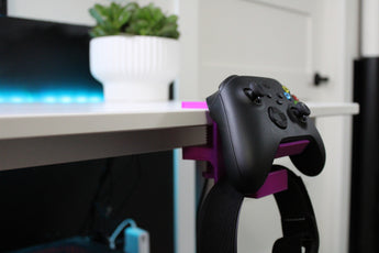 - Universelle Halterung zur einfachen Aufbewahrung von Gaming-Controller und Headset.