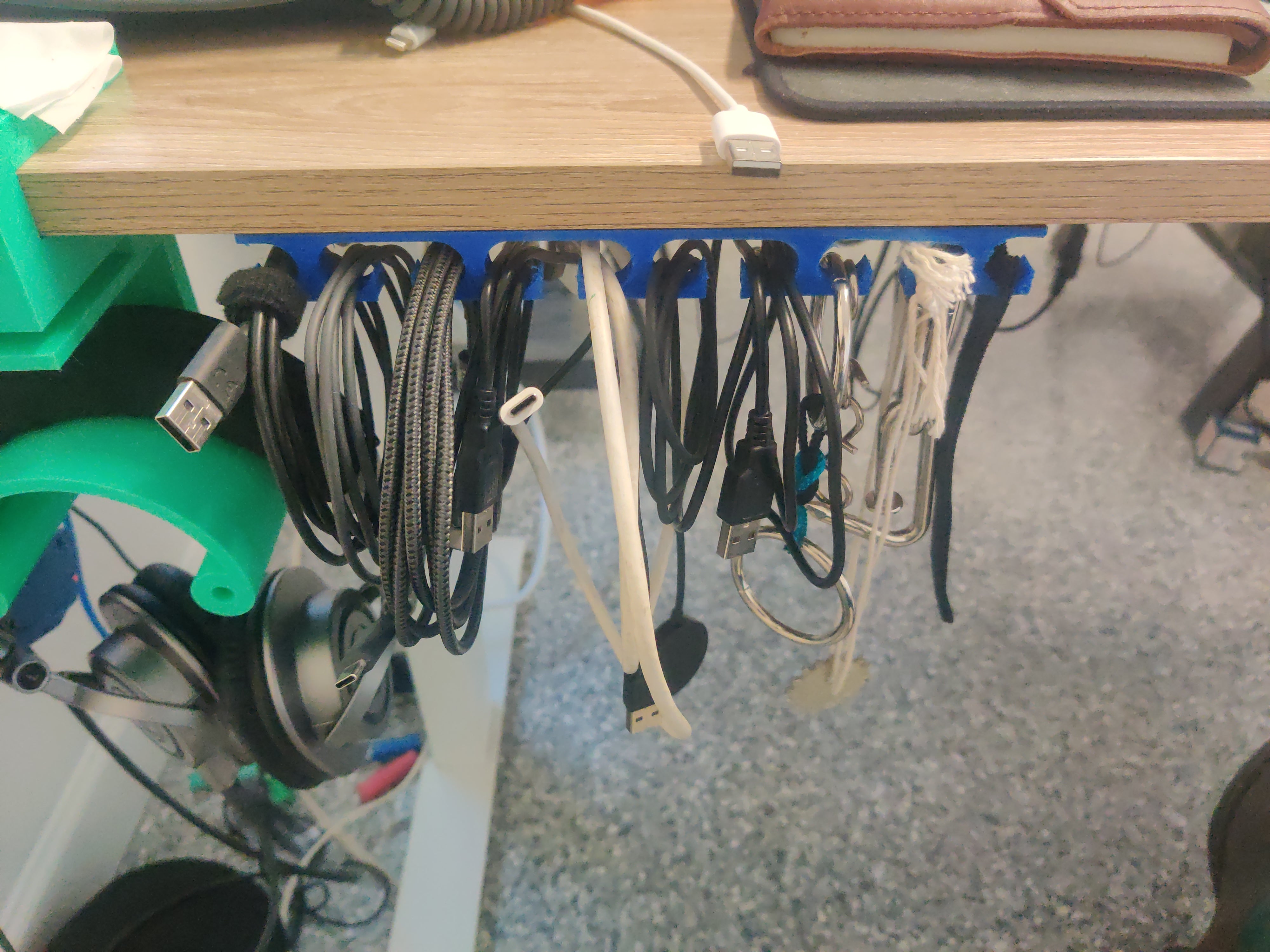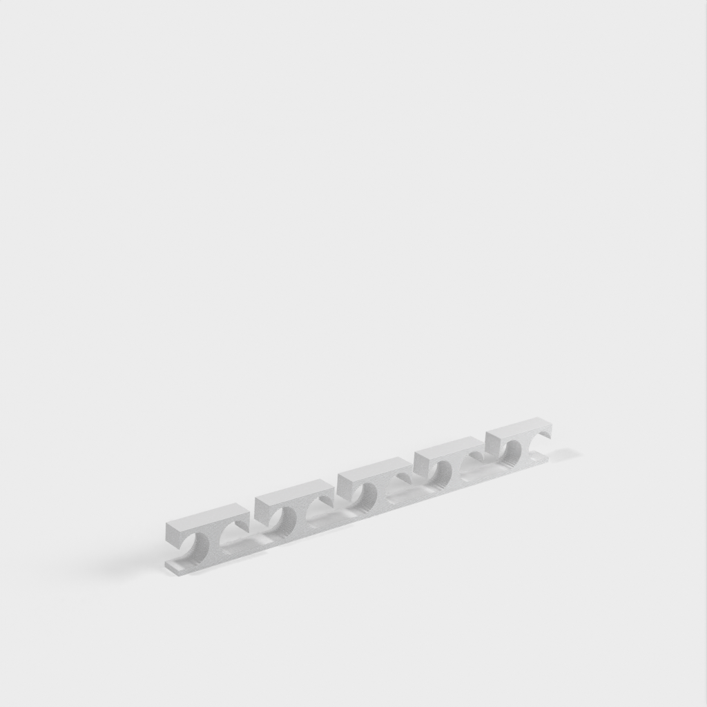Dies ist ein kleiner Kabel-Organizer, den ich entwickelt habe, um USB-Kabel ordentlich aufgerollt auf meinem Schreibtisch aufzubewahren. Ich habe es mit doppelseitigem Klebeband unter meinem Schreibtisch befestigt. Ich persönlich habe 10-mm-Tesa-Klebeband verwendet, es kann aber auch 3M-Klebeband verwendet werden. Dieses Produkt hilft, Ihren Bereich sauber und ordentlich zu halten, indem es Ihre USB-Kabel einfach und effizient organisiert.