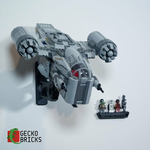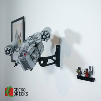 Fremvis din LEGO Razor Crest i otte forskellige orienteringer med dette vægbeslag. Den justerbare arm sikrer en sikker og diskret præsentation af skibet. Sættet inkluderer også en separat vægmonteret stander til dine minifigurer, der nemt opsættes uden store indgreb.