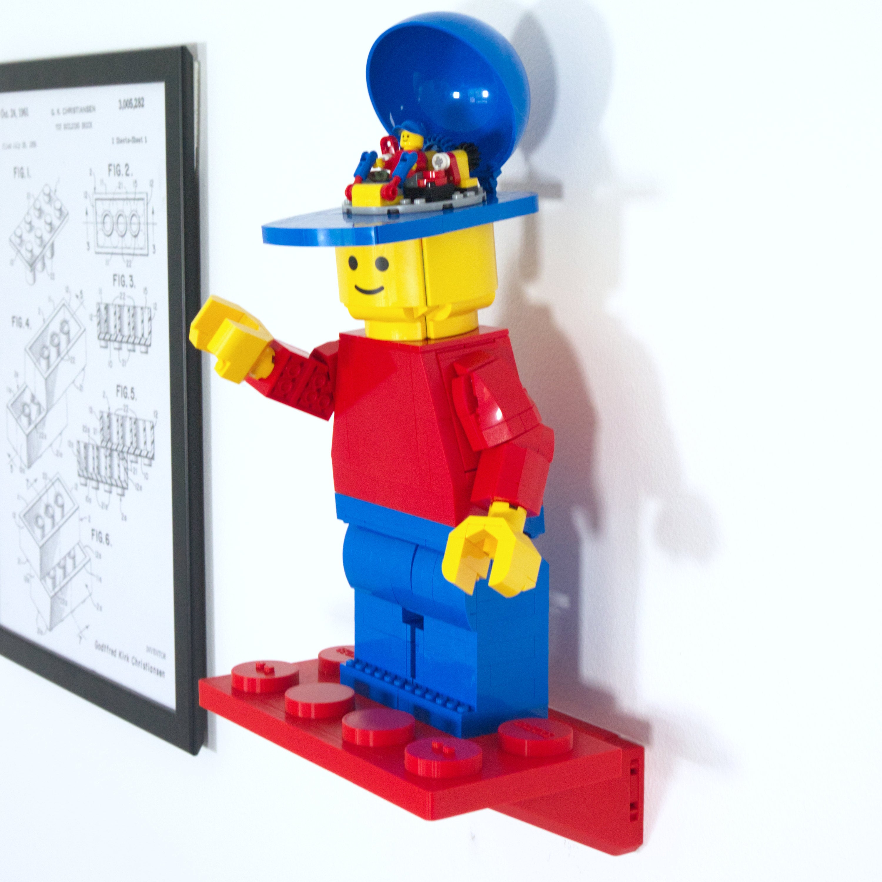 - Wandhalterung speziell für die skalierte Minifigur 40649 entwickelt.