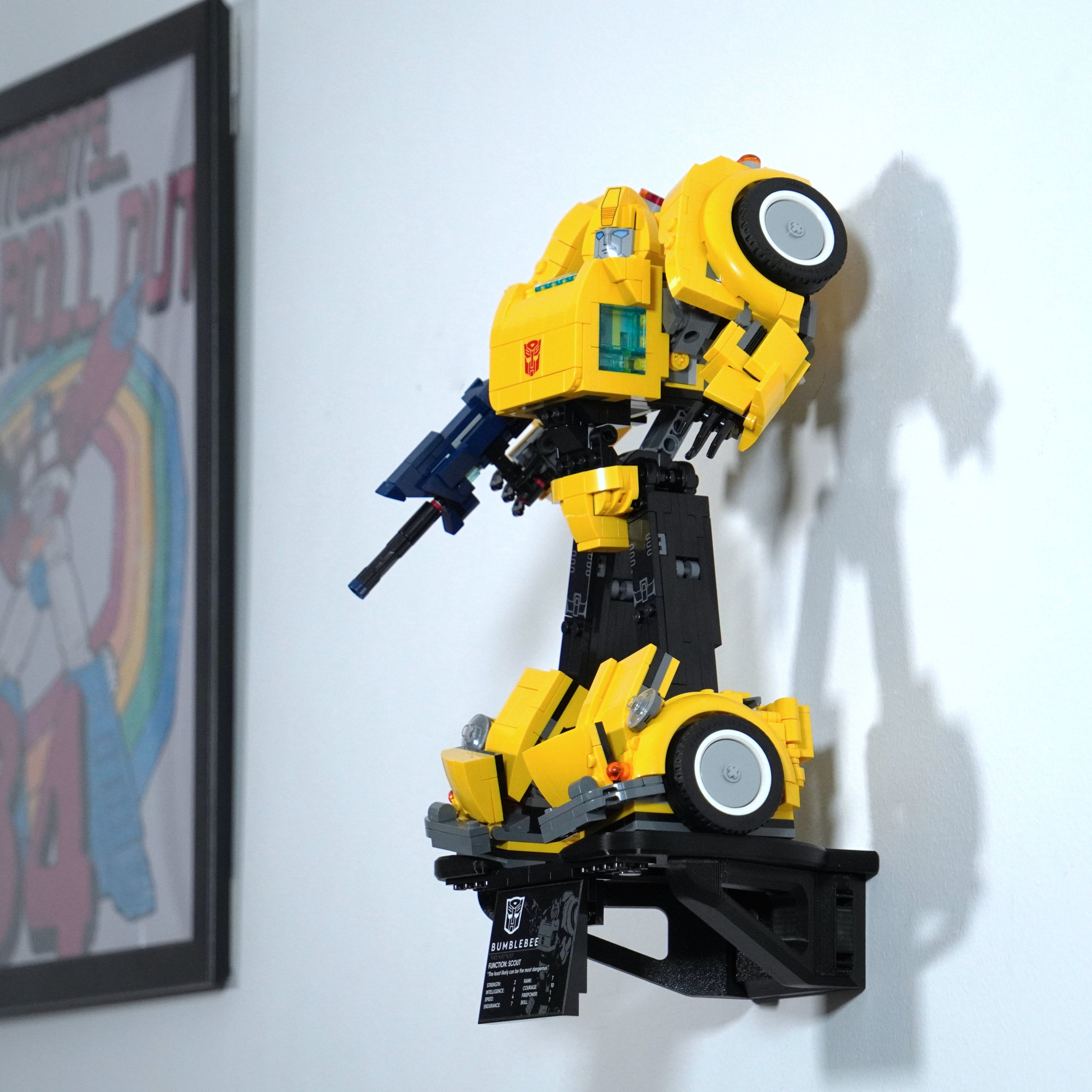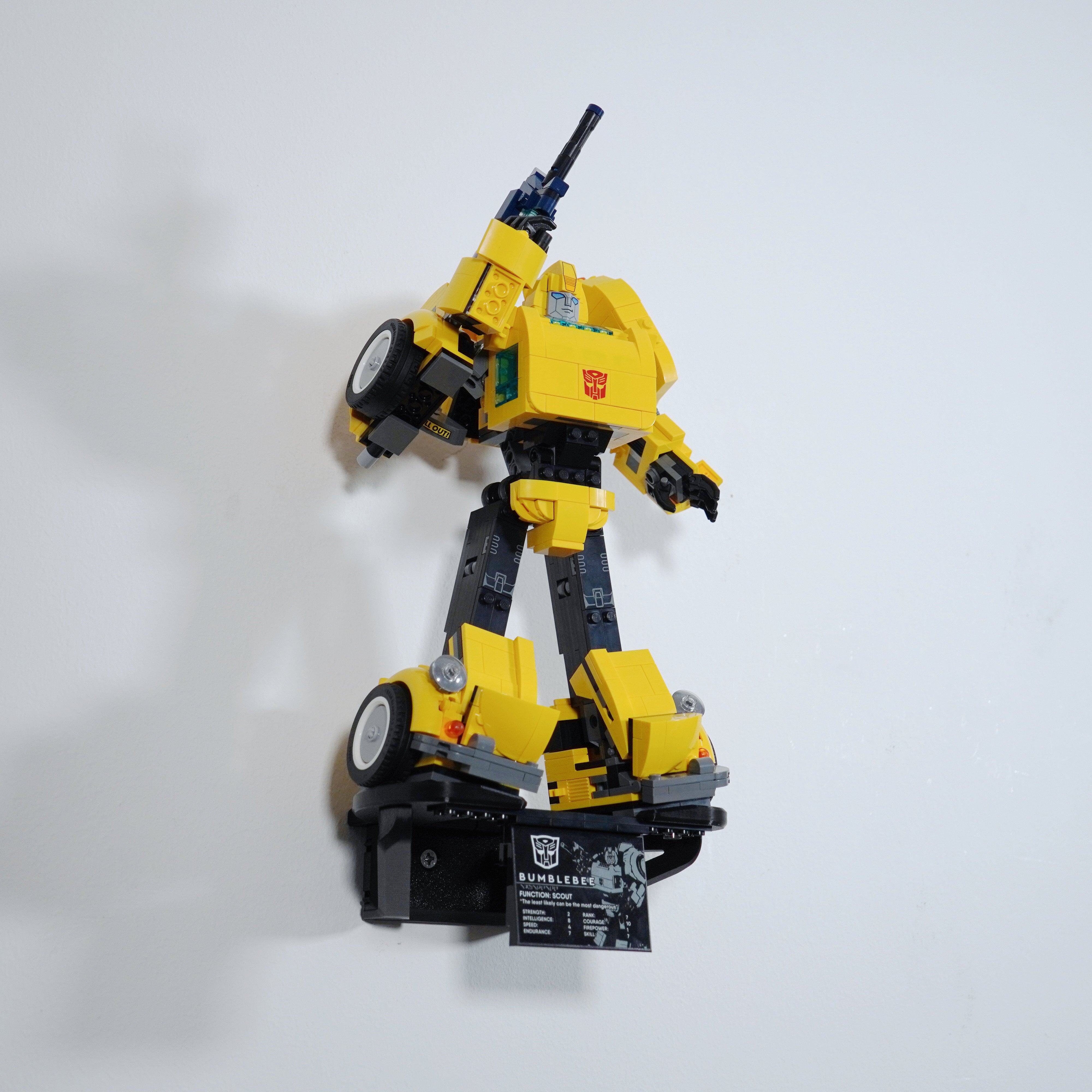 Dette vægbeslag er designet specifikt til Transformers Bumblebee 10338 og gør det muligt at udstille modellen sikkert. Sættet kan nemt tages ned fra væggen ved behov. Beslaget inkluderer desuden en holder til det tilhørende infoskilt og monteres med to skruer på 4-5 mm.