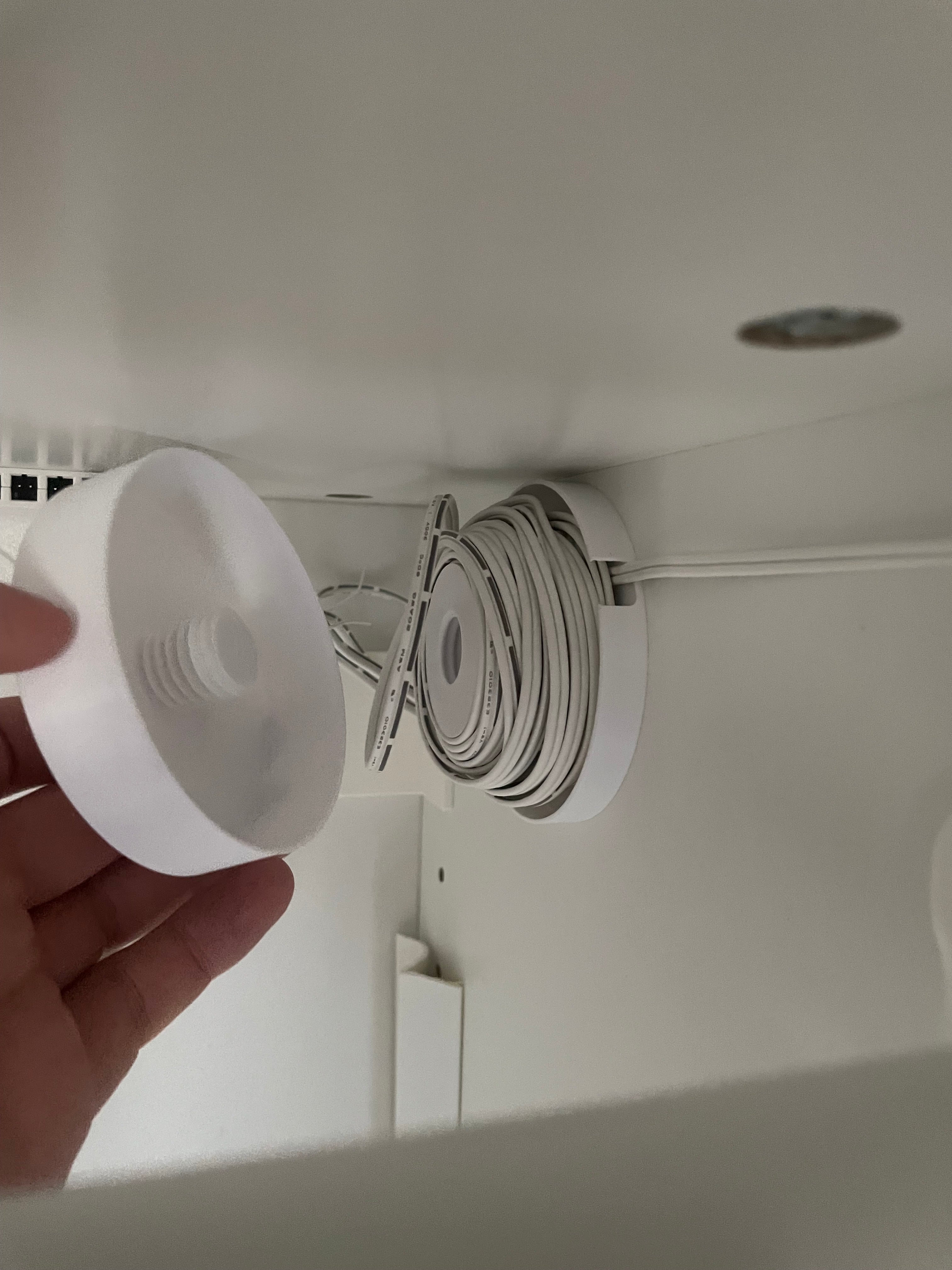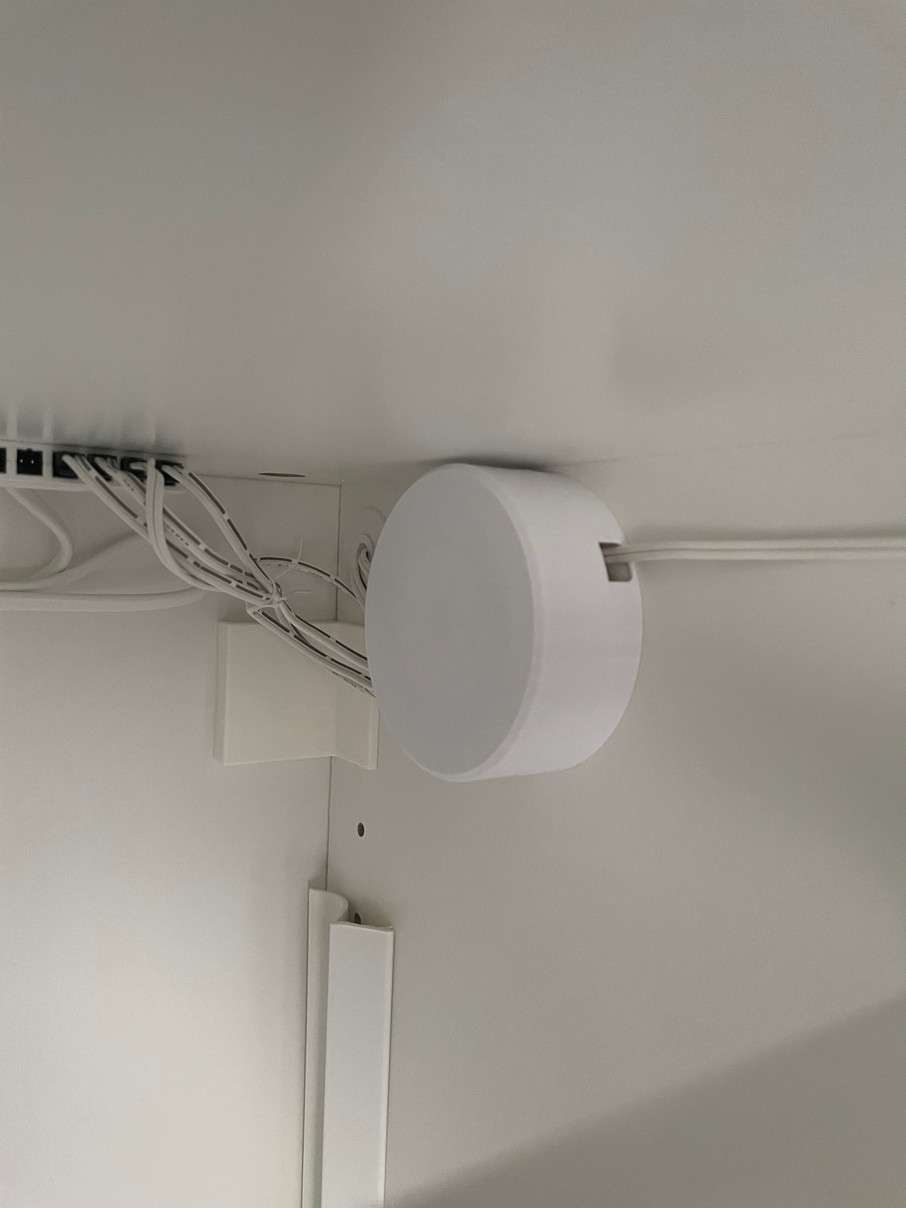 Runder Kabelorganisator zur dauerhaften Installation. Dieses Produkt verfügt über ein Loch in der Mitte der Basis, sodass es an einer Wand befestigt werden kann.