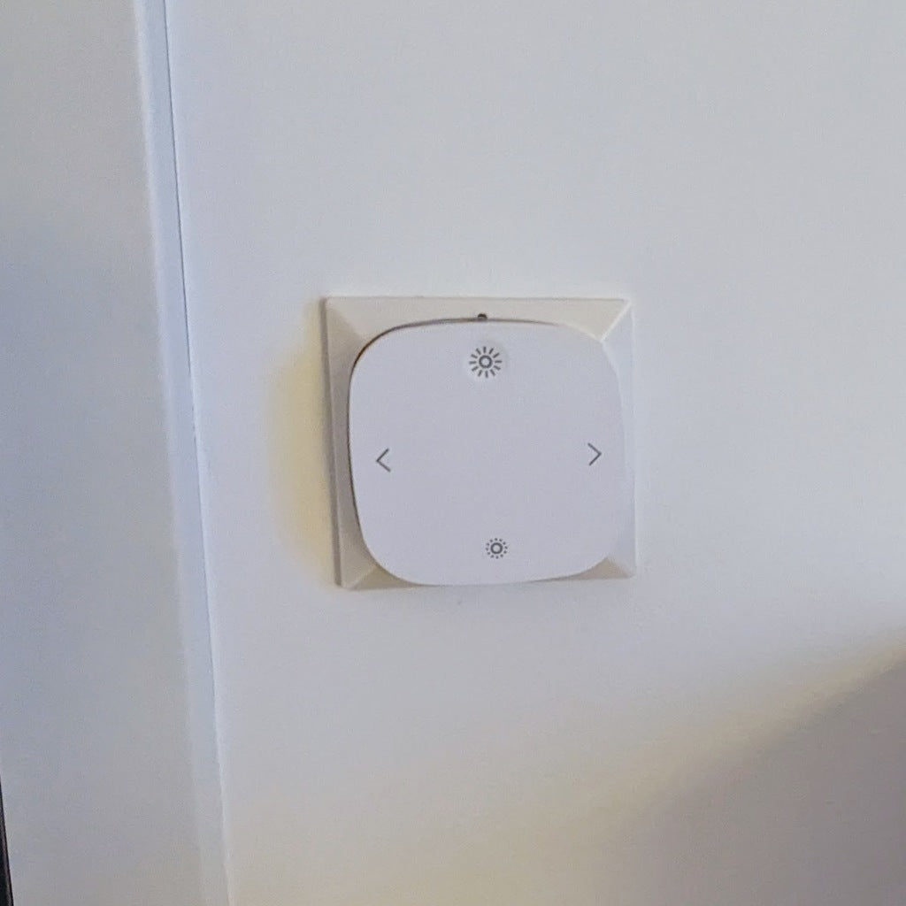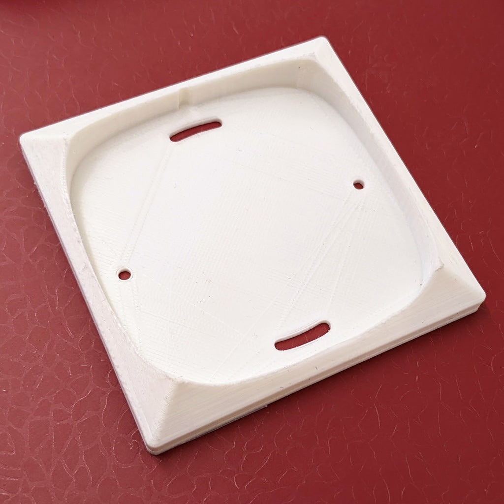 Die STYRBAR-Wandhalterung ist eine Halterung für die STYRBAR-Smart-Home-Fernbedienung von IKEA, die die normale Position des Lichtschalters problemlos ersetzen kann. Dieses Modell verfügt über Löcher zur Montage an der Standard-Unterputzdose. Und weil unseres schief in der Wand sitzt, sind die vertikalen Löcher Schlitze.