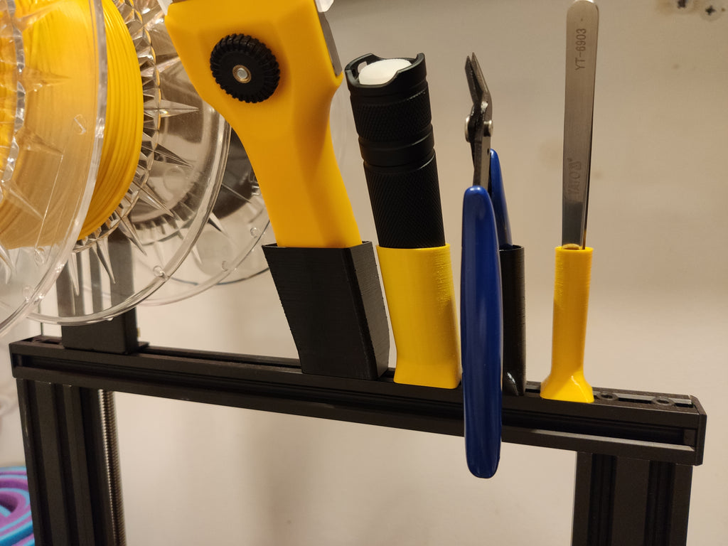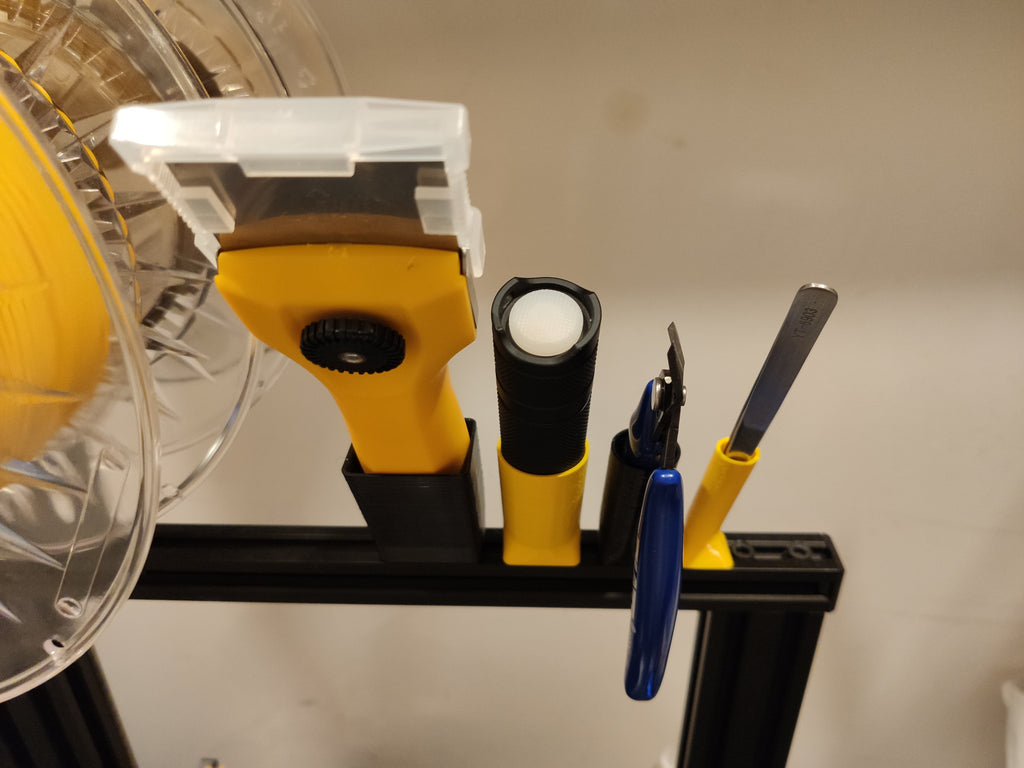 Diese Werkzeughalter sind für die nahtlose Integration mit 2020-Extrusionsprofilen konzipiert und bieten eine praktische Lösung für die Organisation Ihres Arbeitsplatzes. Sie bieten spezielle Aufbewahrungsmöglichkeiten für eine Vielzahl häufig verwendeter Handwerkzeuge.