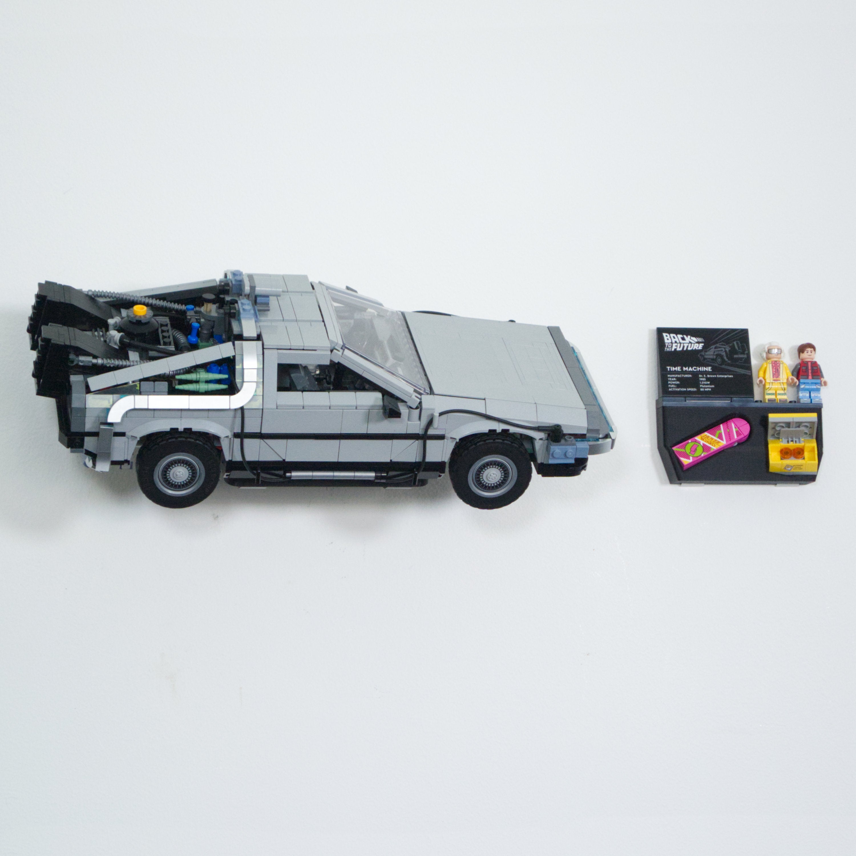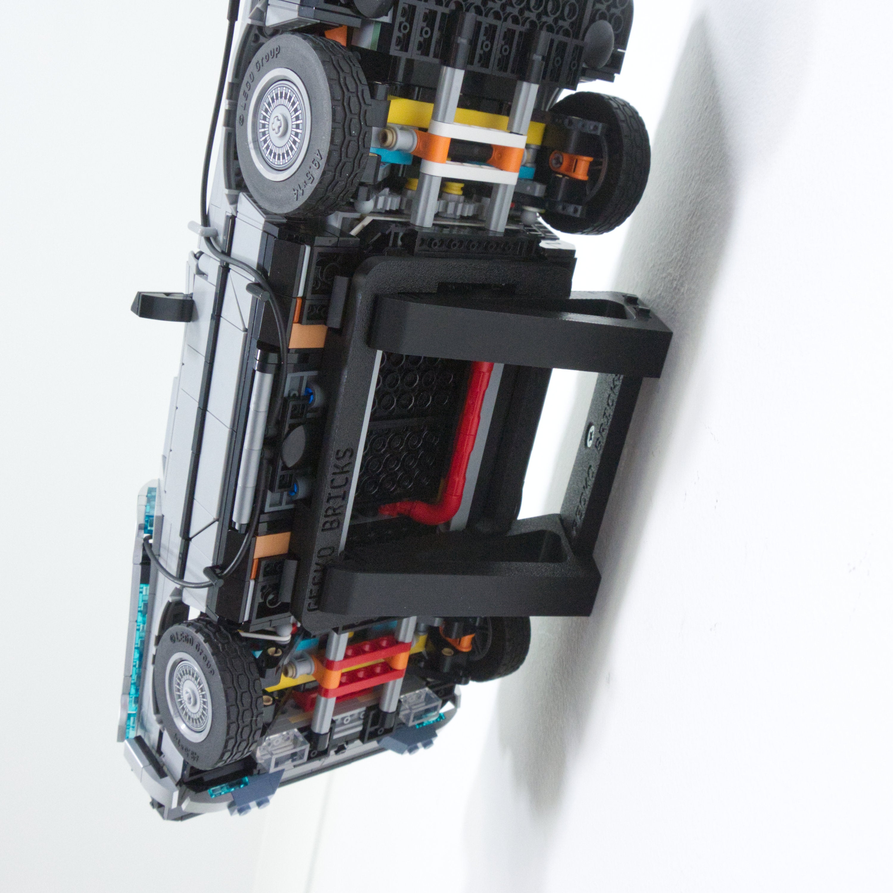• Speziell entwickelte Wandhalterung für das DeLorean-Modell aus Set 10300.