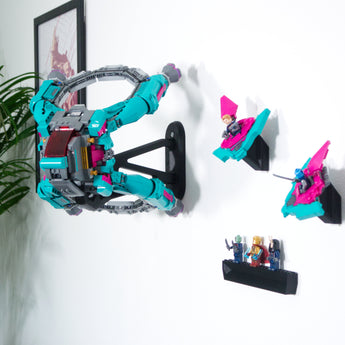 Diese Wandhalterung für das Marvel New Guardians Ship 76255 ermöglicht es Ihnen, das Modell horizontal auszustellen, entweder direkt nach vorne oder zu einer der Seiten geneigt. Das Design erlaubt eine einfache Abnahme des Raumschiffs. Die Packung enthält außerdem separate Halterungen für Mini-Fahrzeuge und Minifiguren, die einfach an der Wand montiert werden.