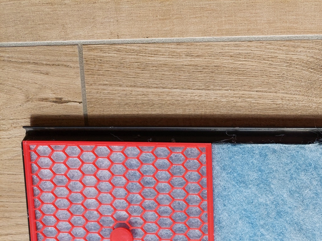 Das Filtermaterial wird durch ein robustes Gitter und zugehörige Stifte effektiv fixiert. Für optimale Stabilität empfiehlt sich die Verwendung von zwei Befestigungspunkten pro Filter. Das Produkt besteht aus dem für seine Langlebigkeit bekannten ABS-Material , das eine lange Lebensdauer des Ersatzfilters gewährleistet.